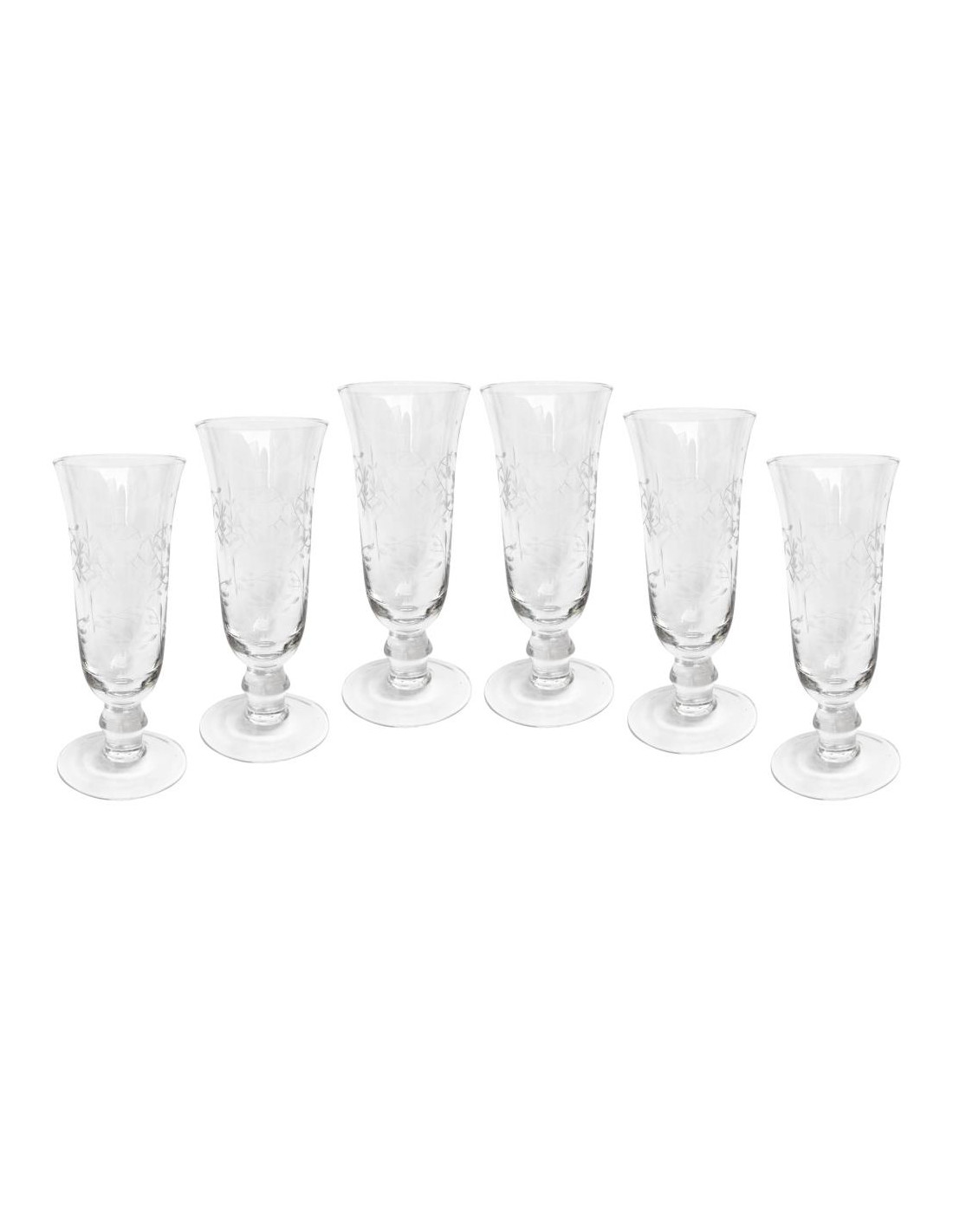 Set 6 calici flute in vetro soffiato a bocca, molato a  mano.
