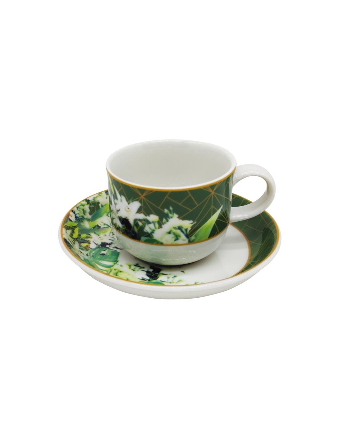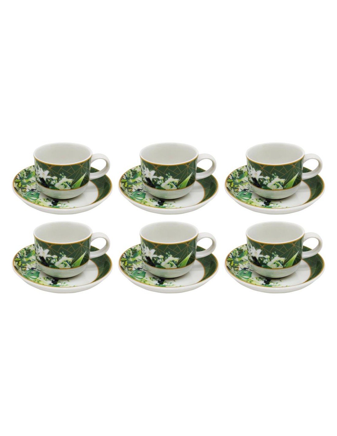 Set 6 tazze caffè con piattino in porcellana decorata, con bordo in filo oro.