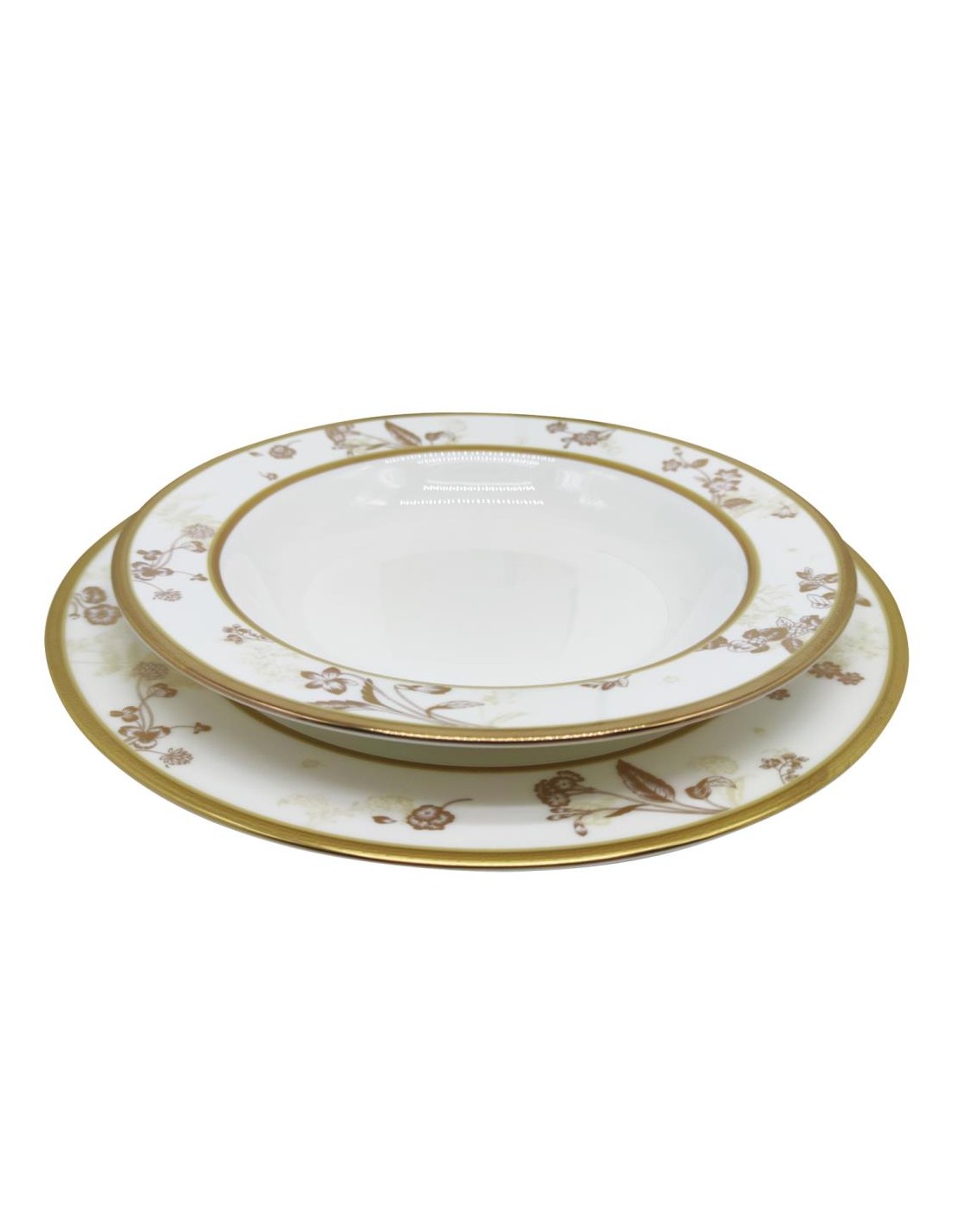 SET PIATTI COMPLETO IN BONE CHINA CON BORDO ORO A TEMA FLOREALE PER 12 PERSONE
