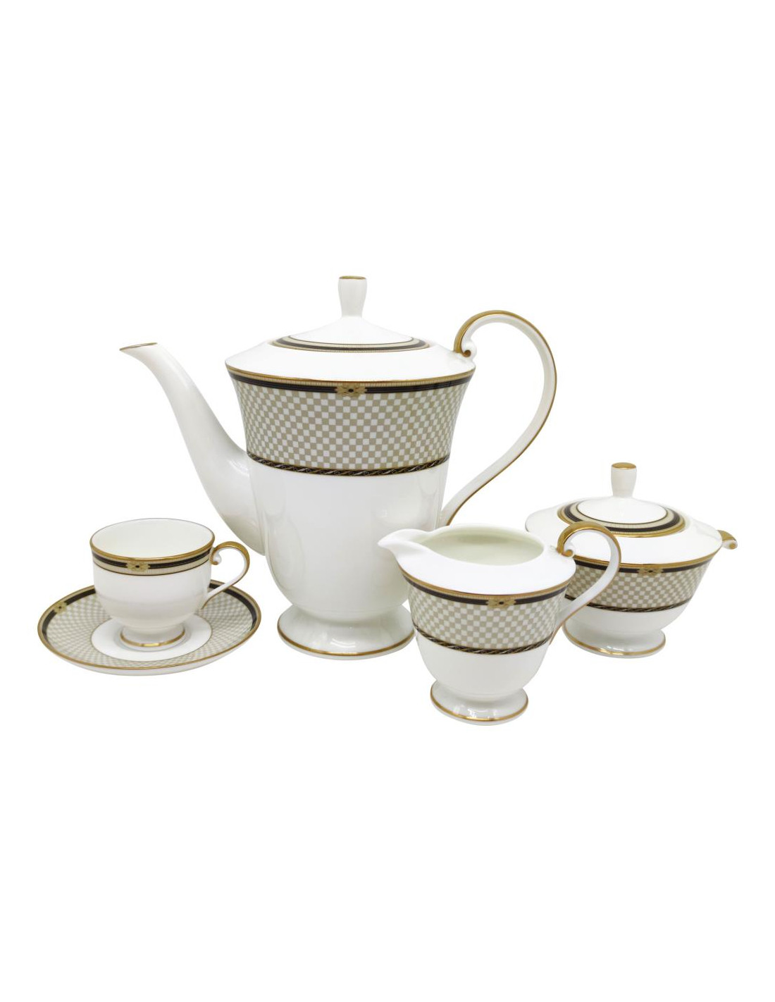 SERVIZIO DI PIATTI PER 12 PERSONE IN BONE CHINA CON BORDO IN ORO