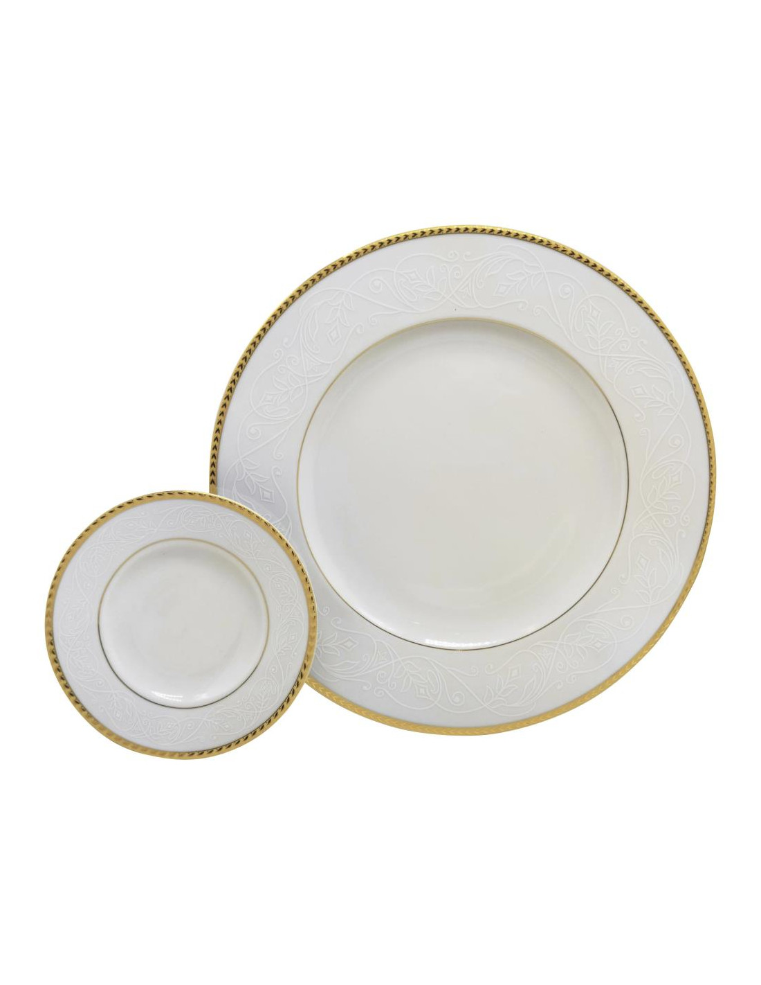 Set piatti dolce con piatto portata eleganti, in porcellana decorata a rilievo e bordo oro