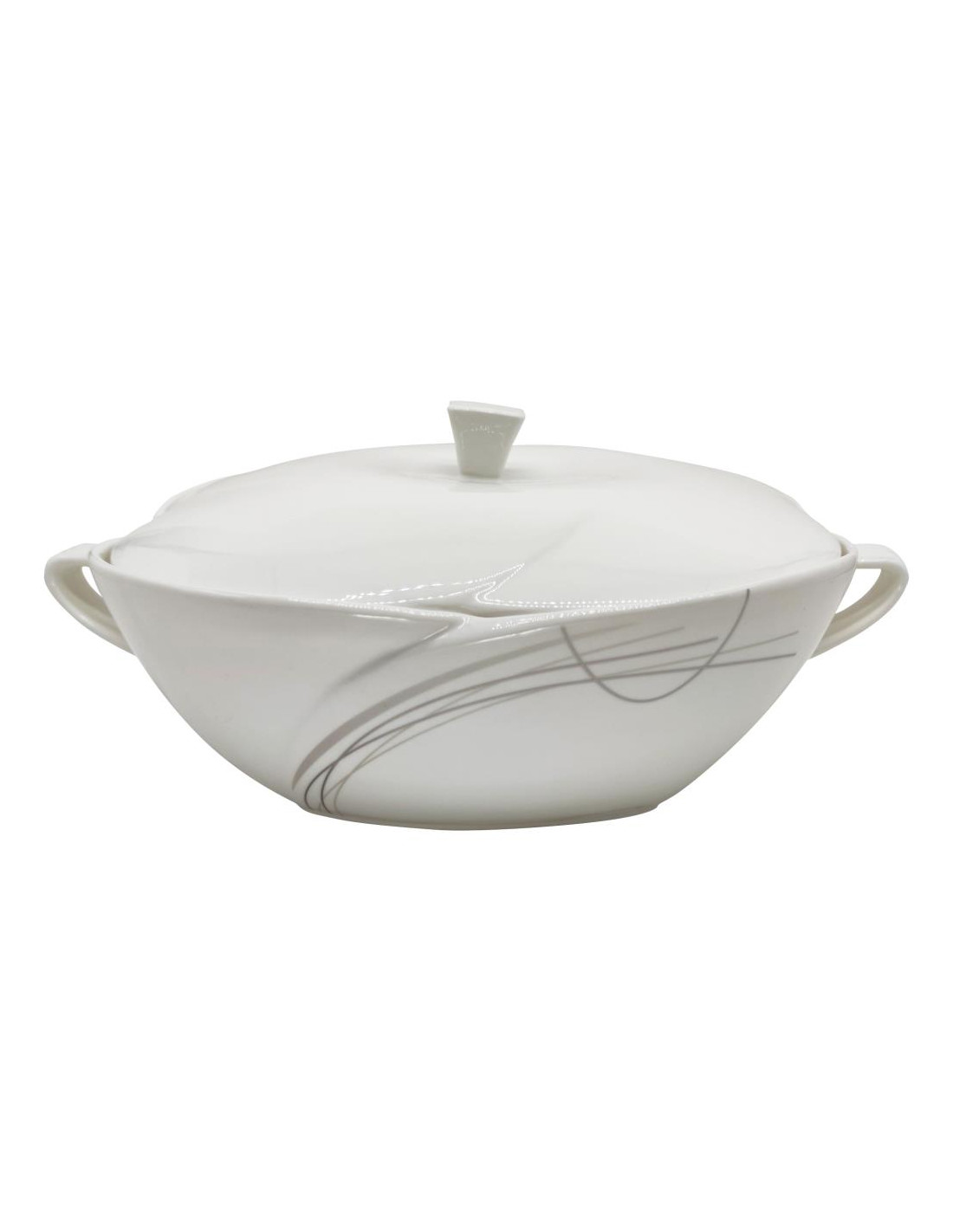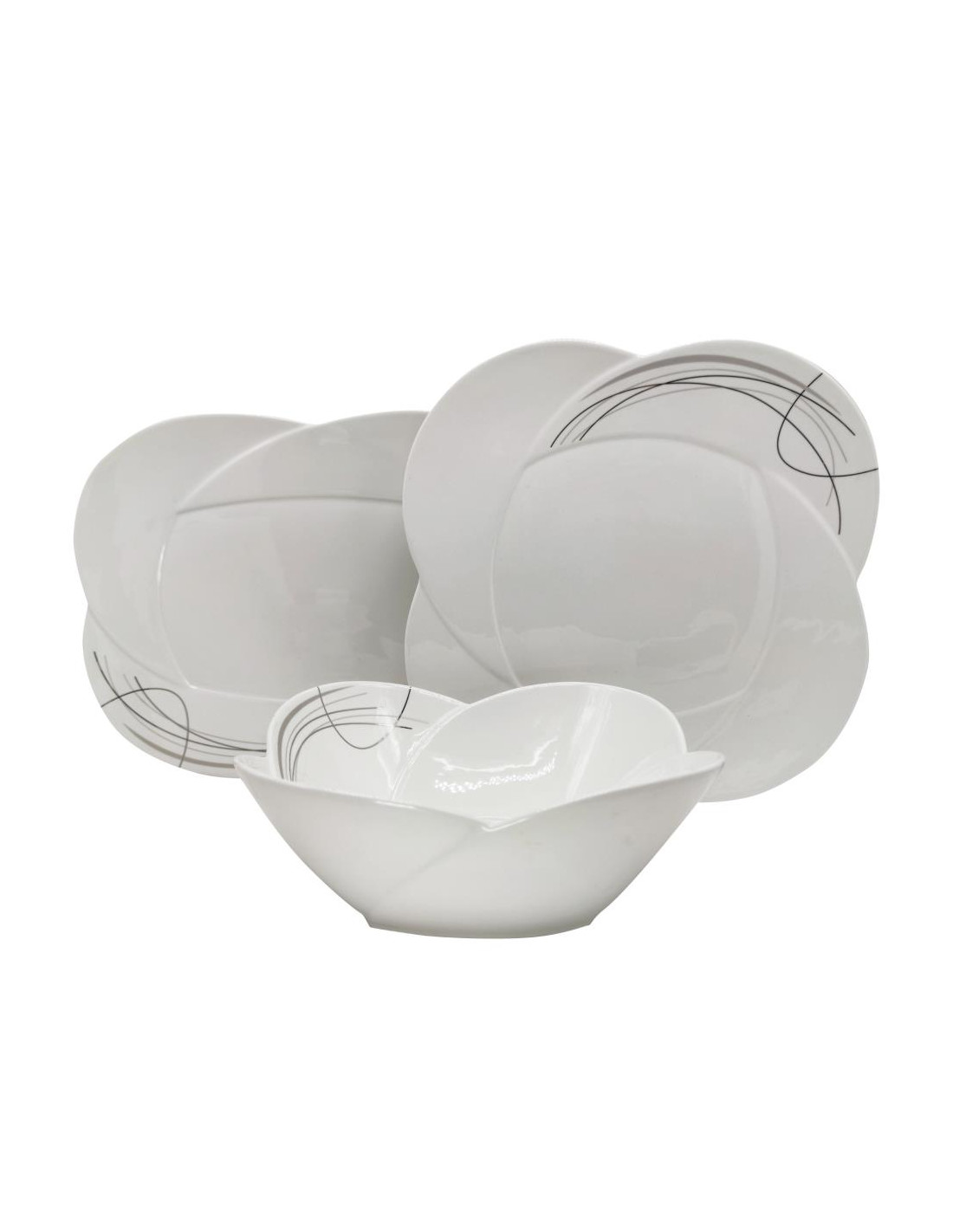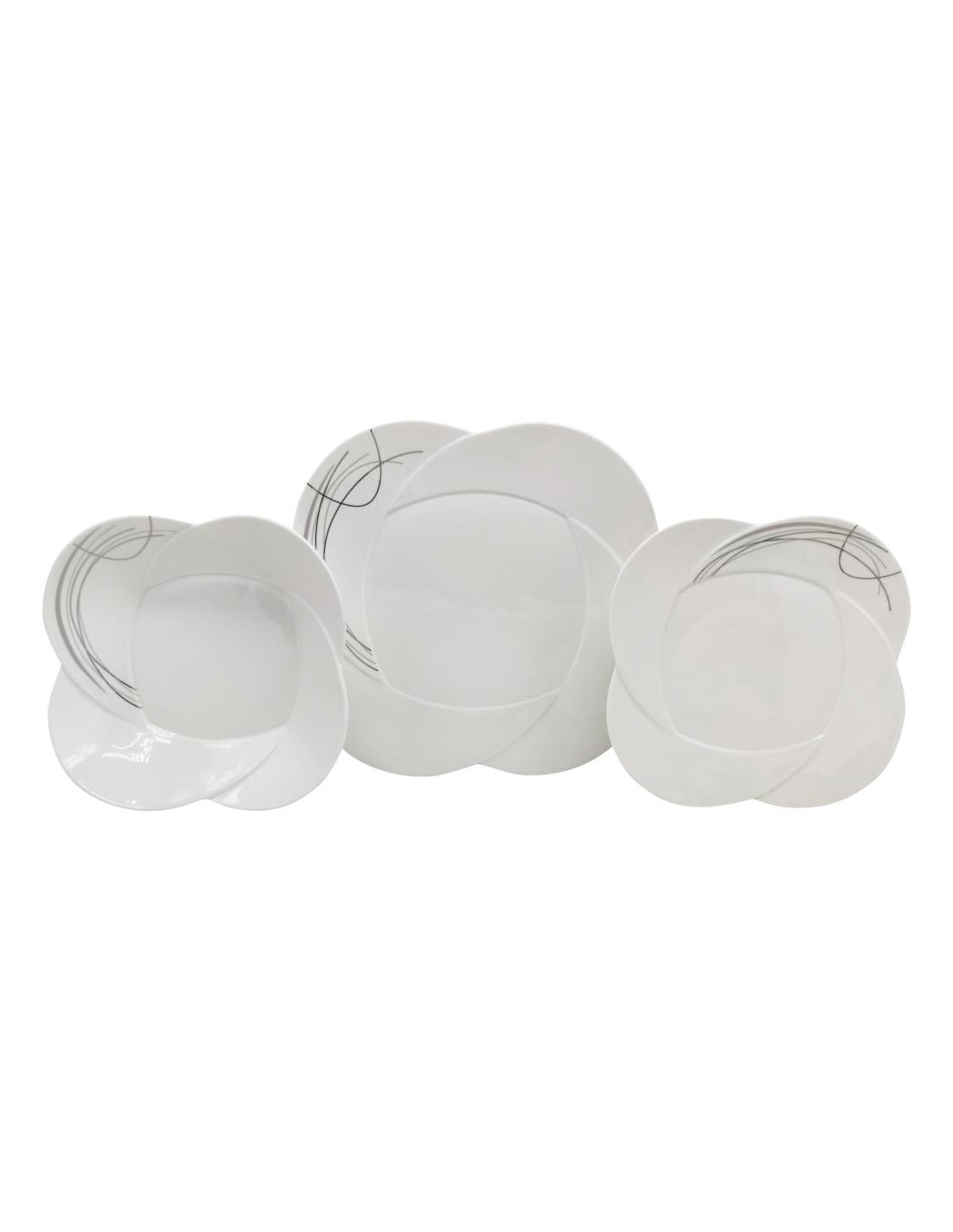 Servizio piatti in porcellana New Bone China, decoro con linee