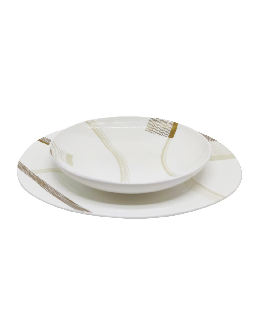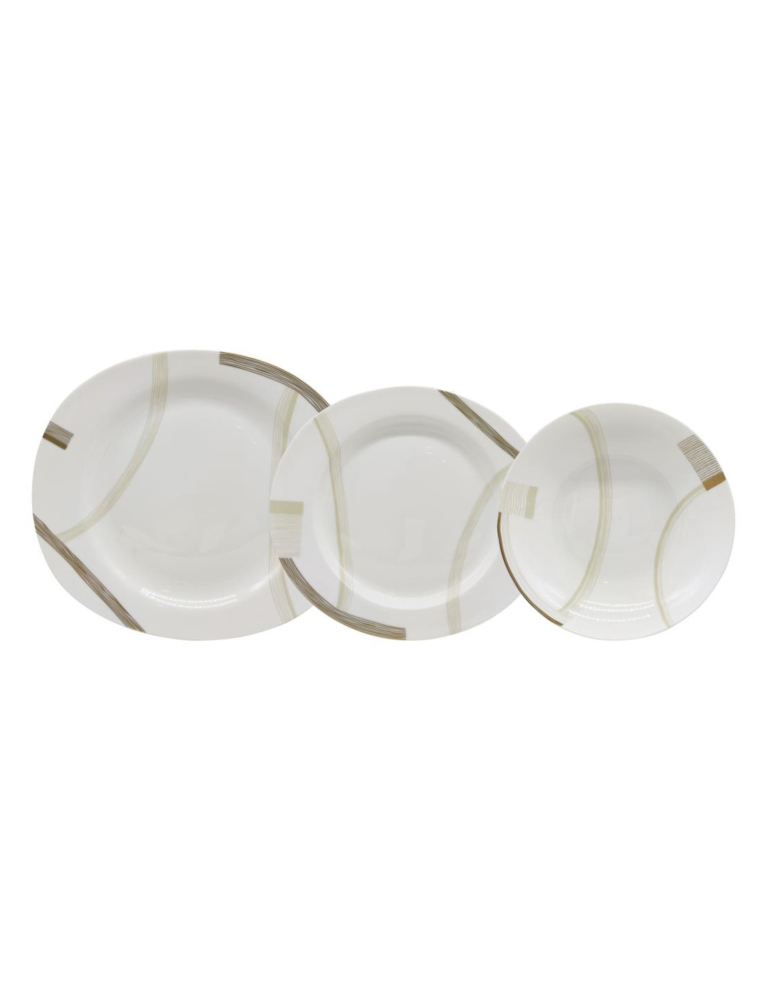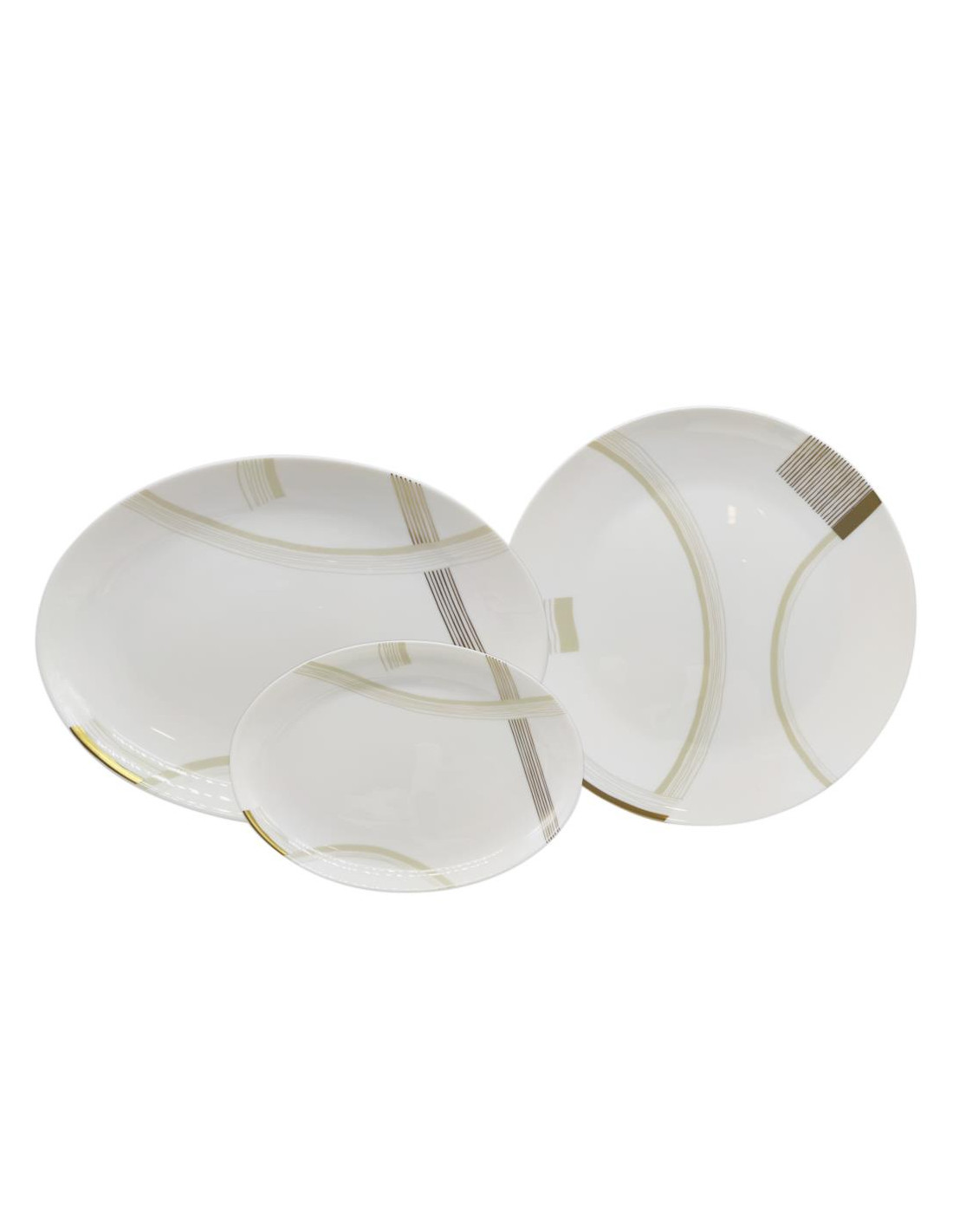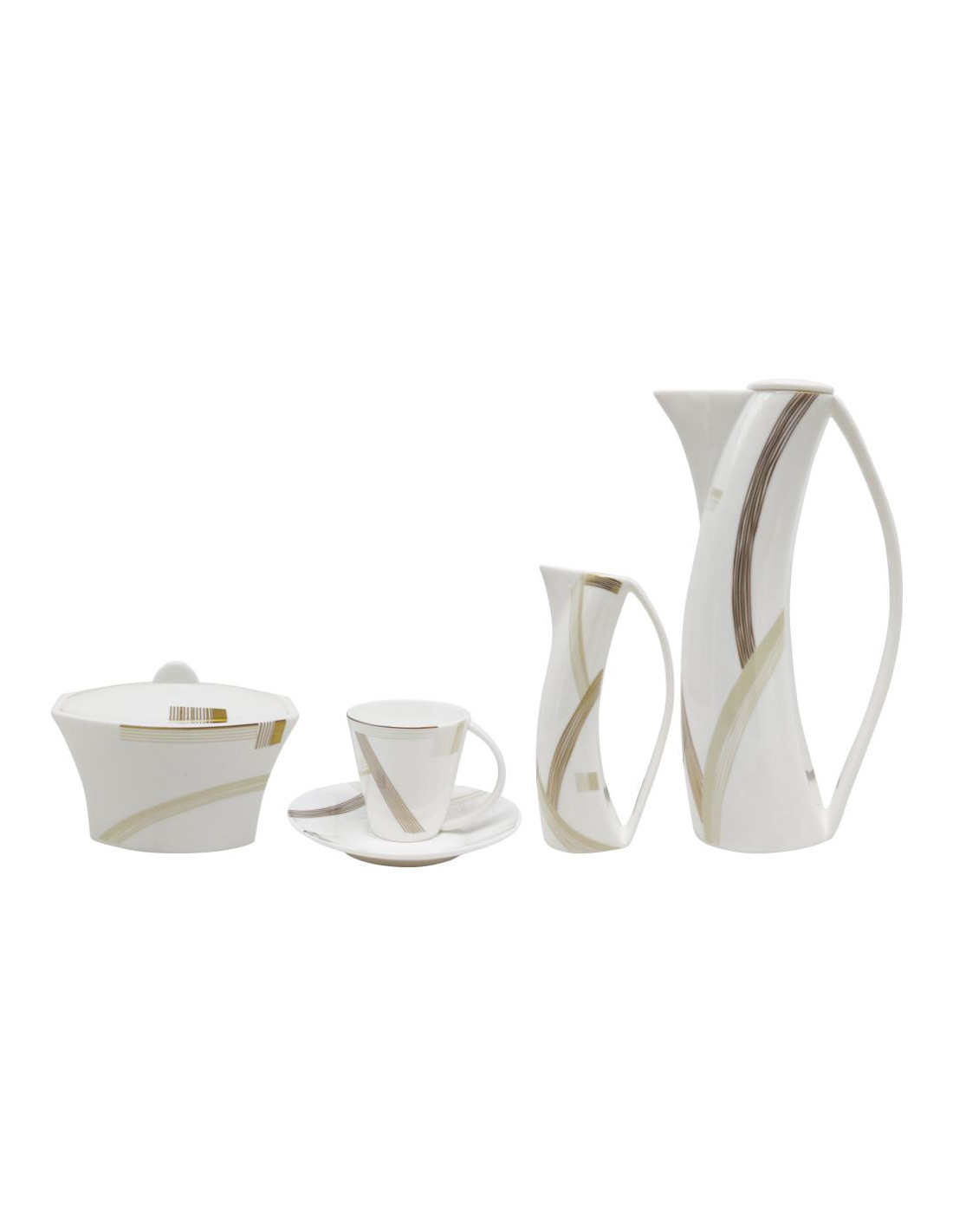 Servizio in porcellana Bone China, decorato da linee curve e rifinizioni in