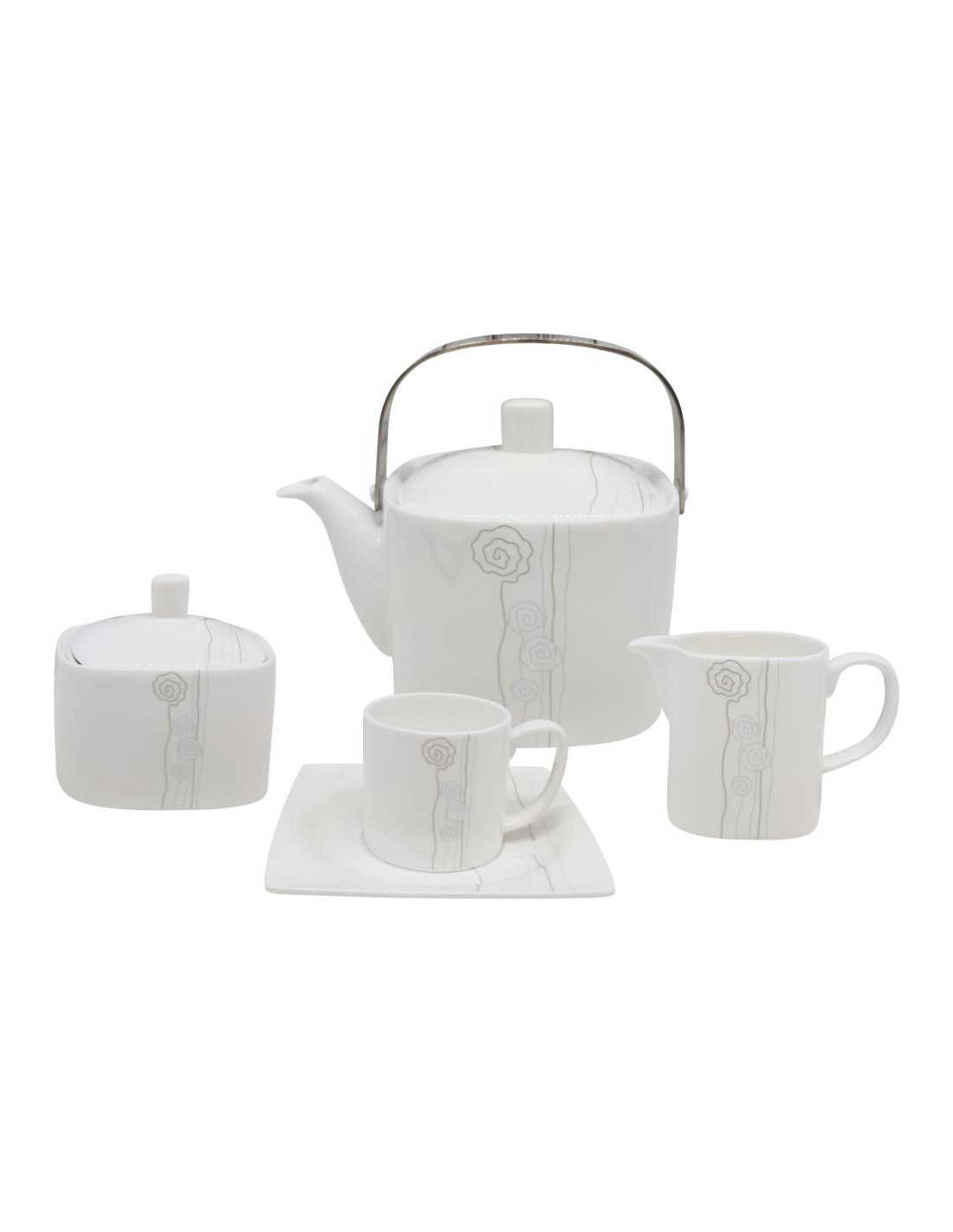 Servizio in porcellana Bone China decorato da linee ondulate che vanno a