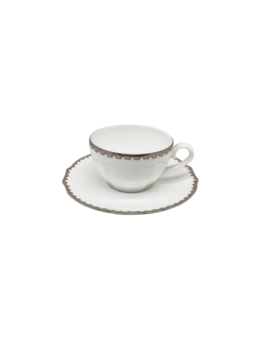 TAZZA DA TÈ CON PIATTINO IN BONE CHINA FILO PLATINO