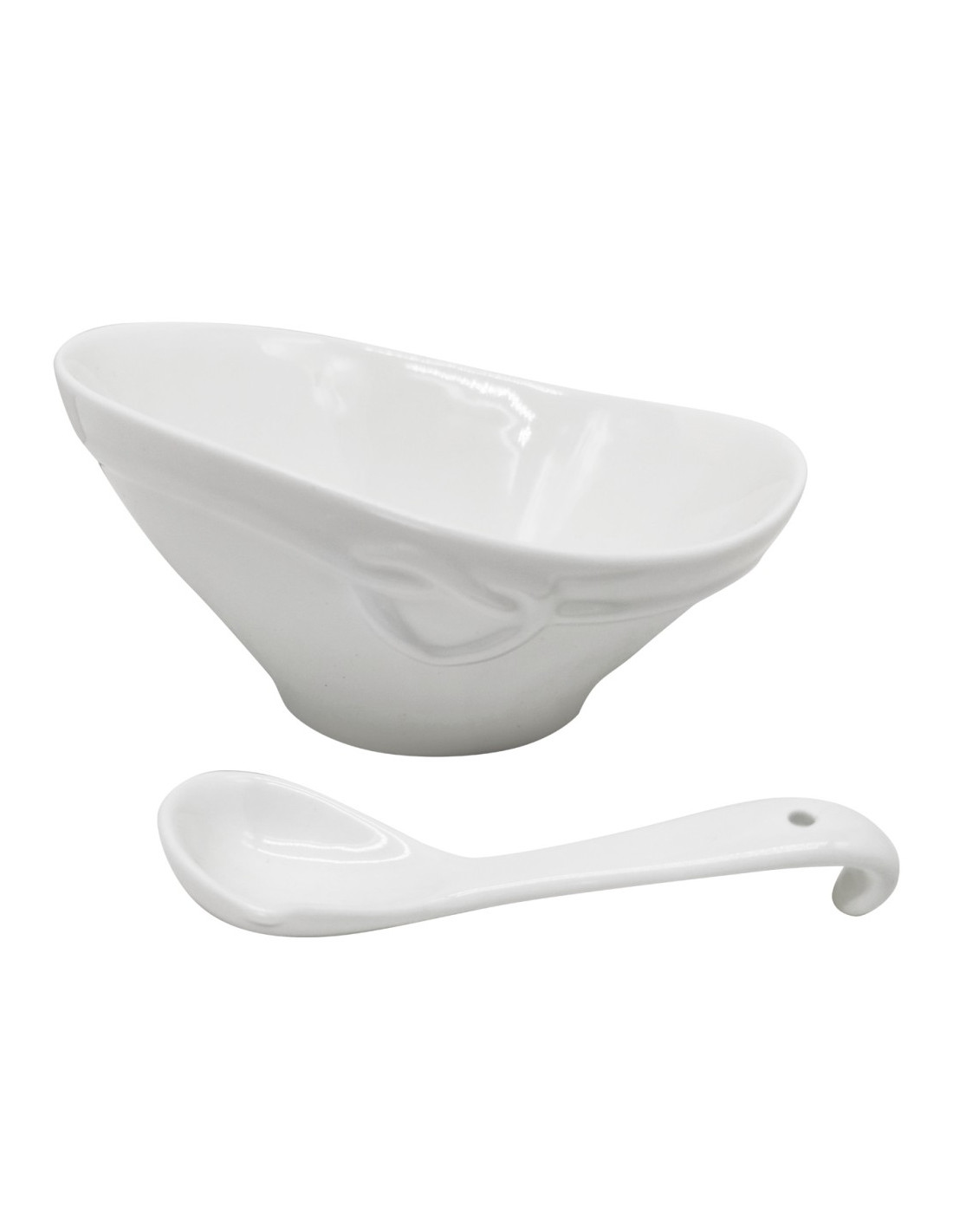 SALSIERA CON CUCCHIAIO IN PORCELLANA BIANCA