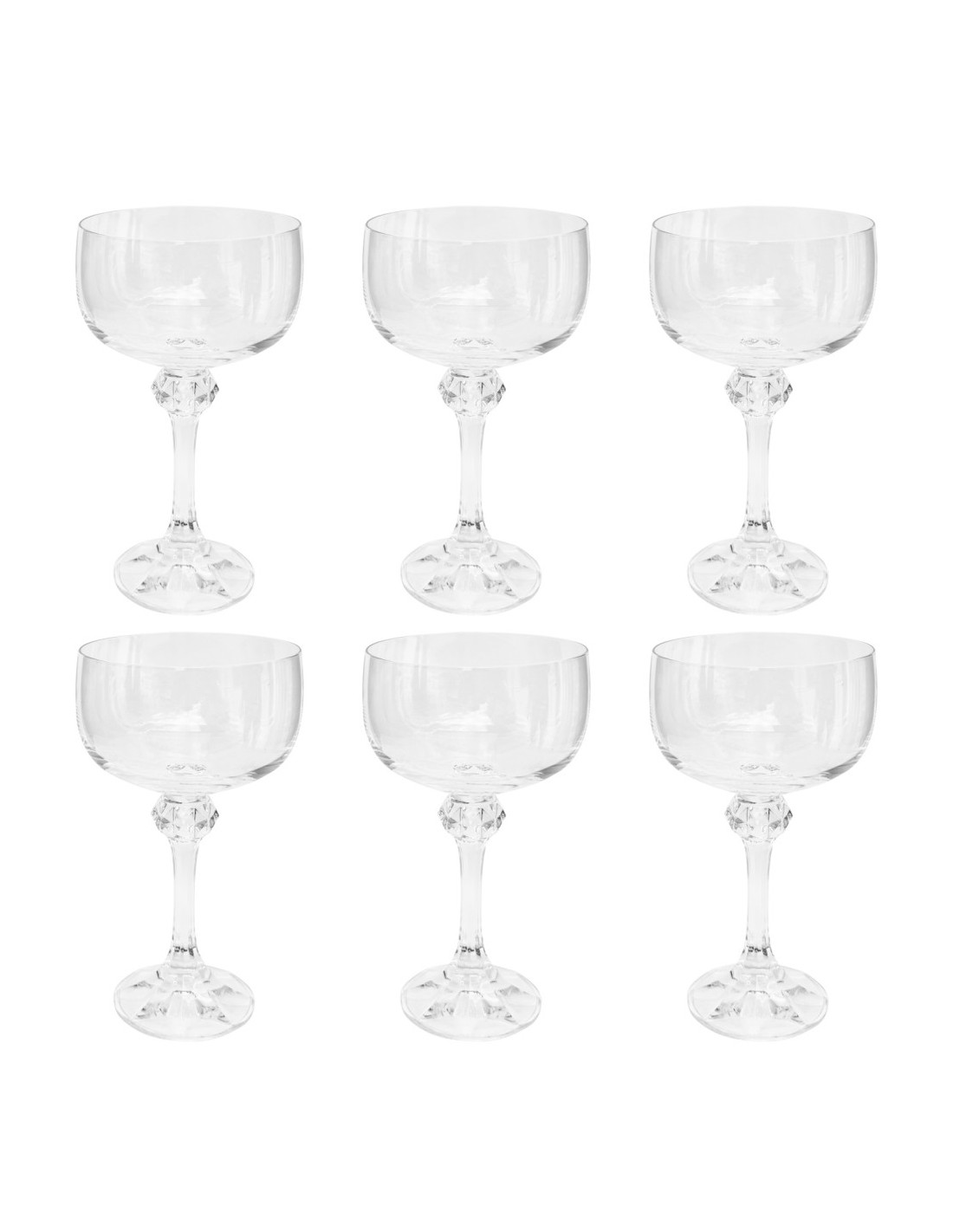 Set 6 calici champagne in vetro trasparente.