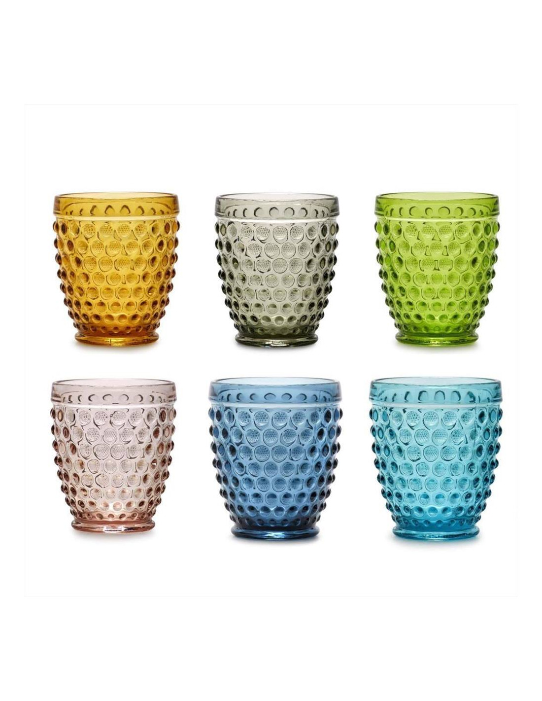 Set 6 bicchieri acqua/vino colorati in pasta di vetro decorato da gocce