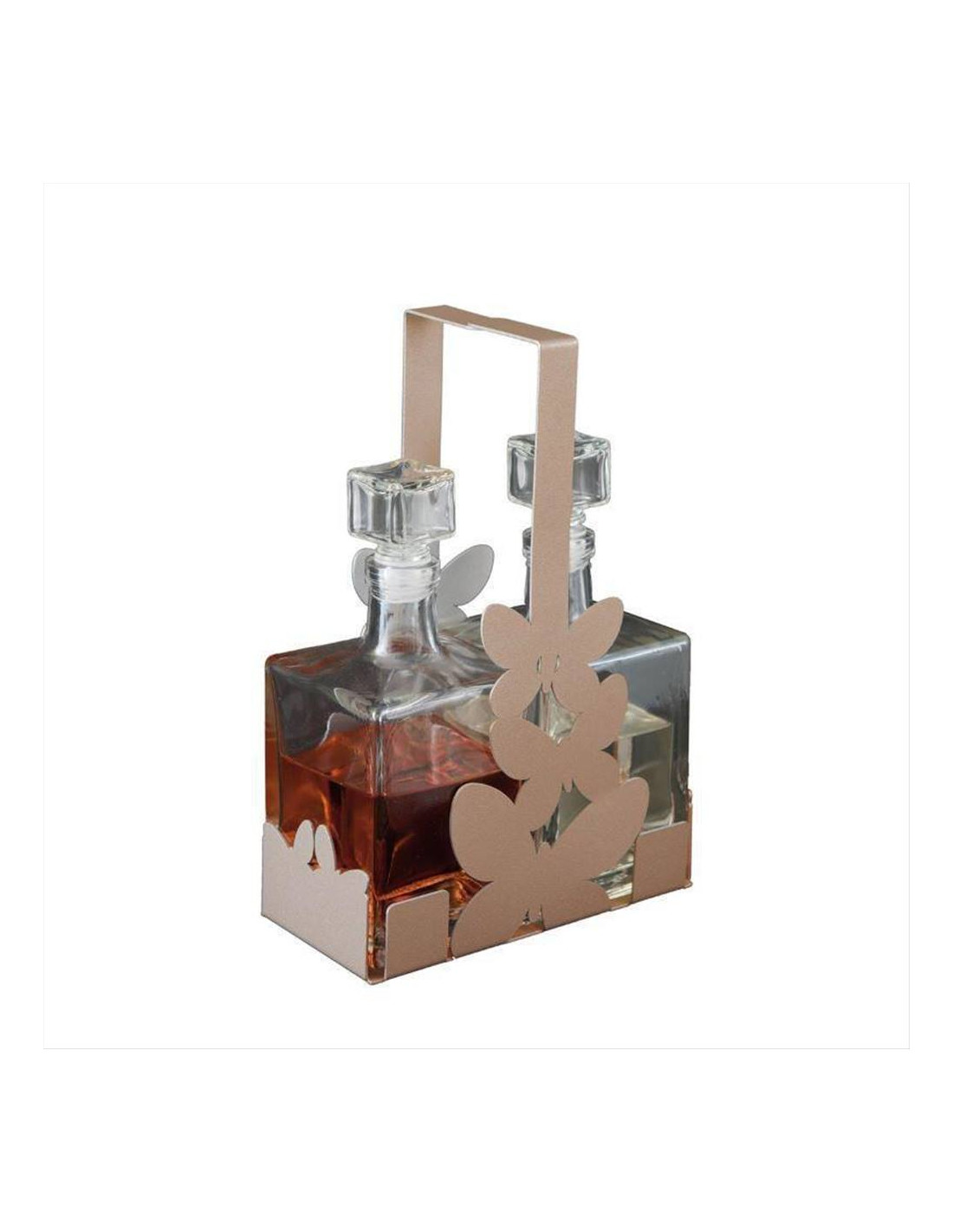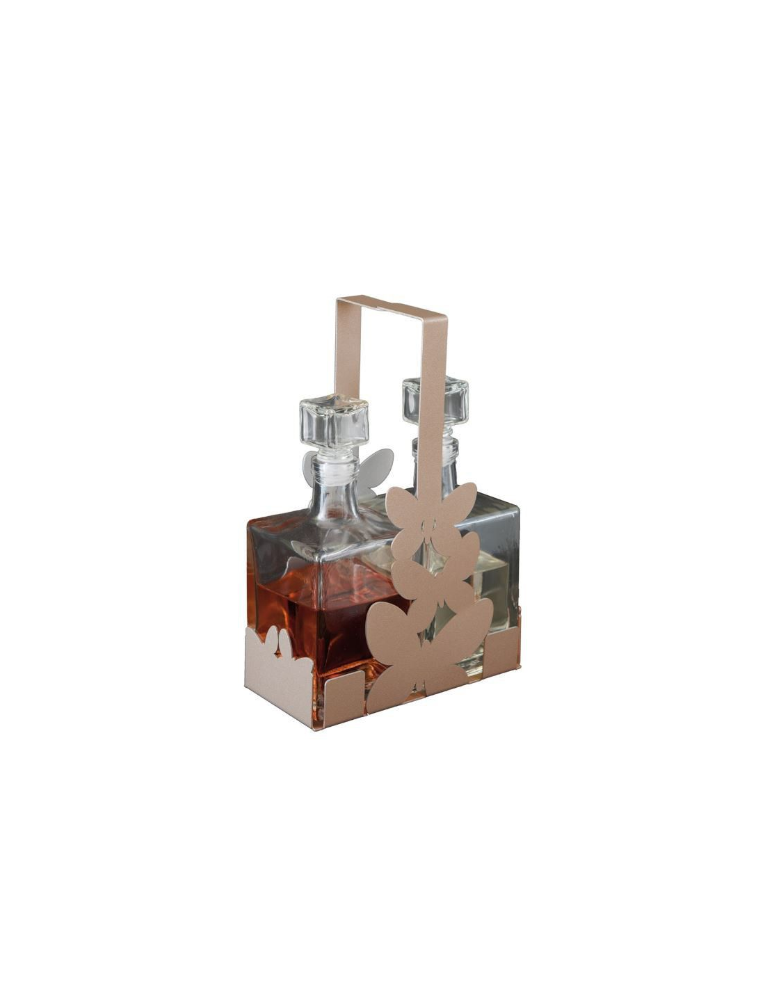 Big menage farfalle beige in metallo con bottiglie da 500 ml per liquori