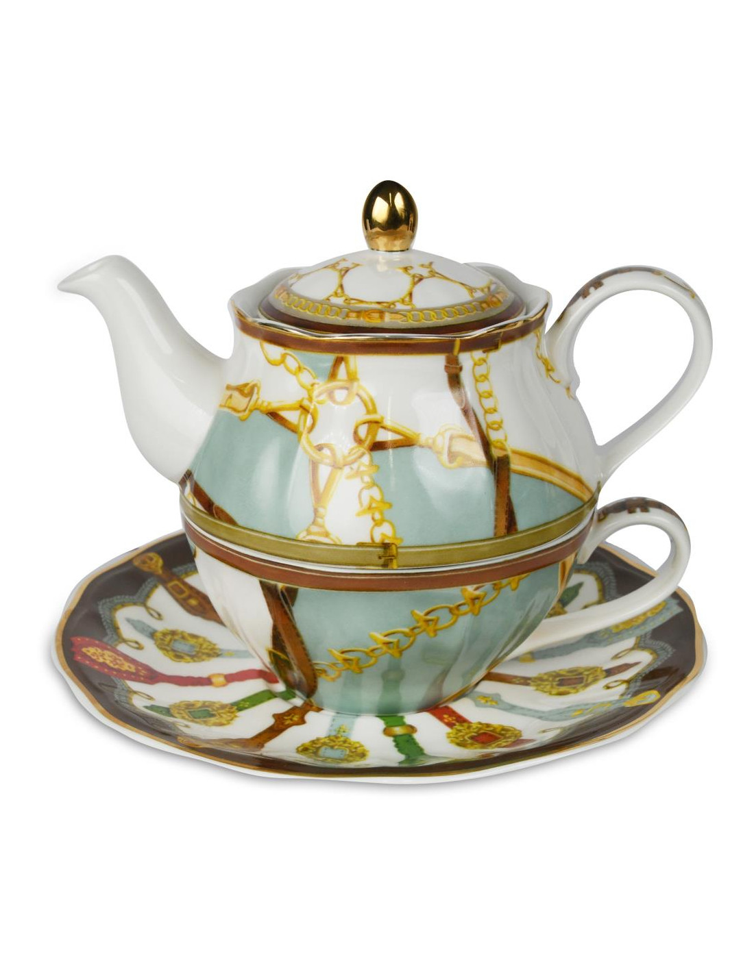 Teiera Tea for one in porcellana finemente decorata con borso in filo