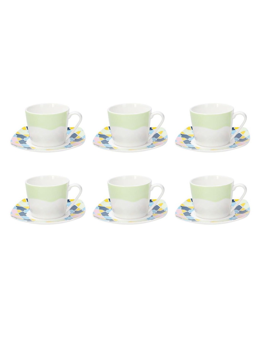 Set 6 tazze caffè con piattino coordinato in porcellana decorata.
