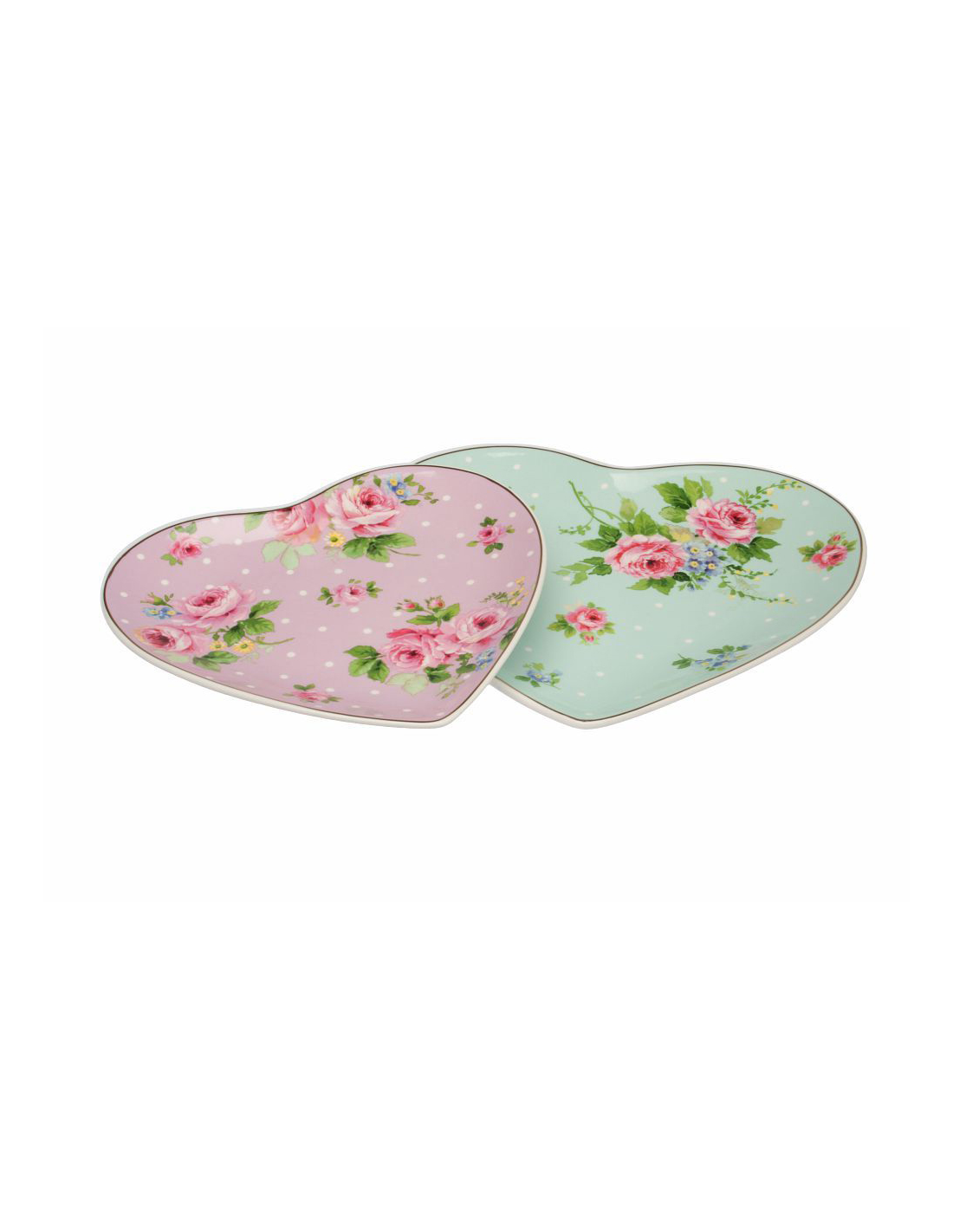 Set 2 piattini cuore in porcellana decorata Mayflower della linea Royal Regent , Fontebasso. Decori classici, delicati fiori dal colore pastello che si articolano sulle superfici.