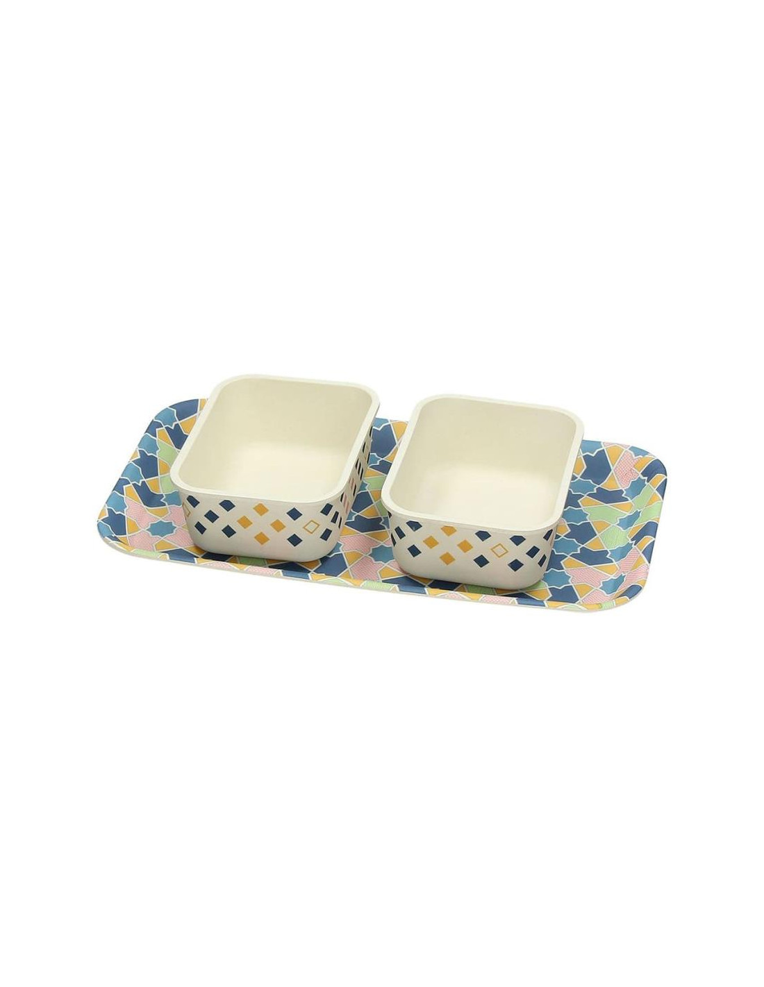 Vassoio rettangolare con 2 coppette in fibra di bambu