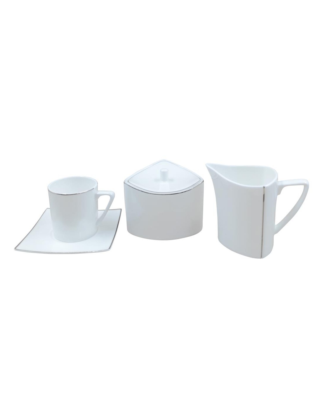SERVIZIO TAVOLA ELEGANTE IN FILO PLATINO PER 12 PERSONE IN BONE CHINA