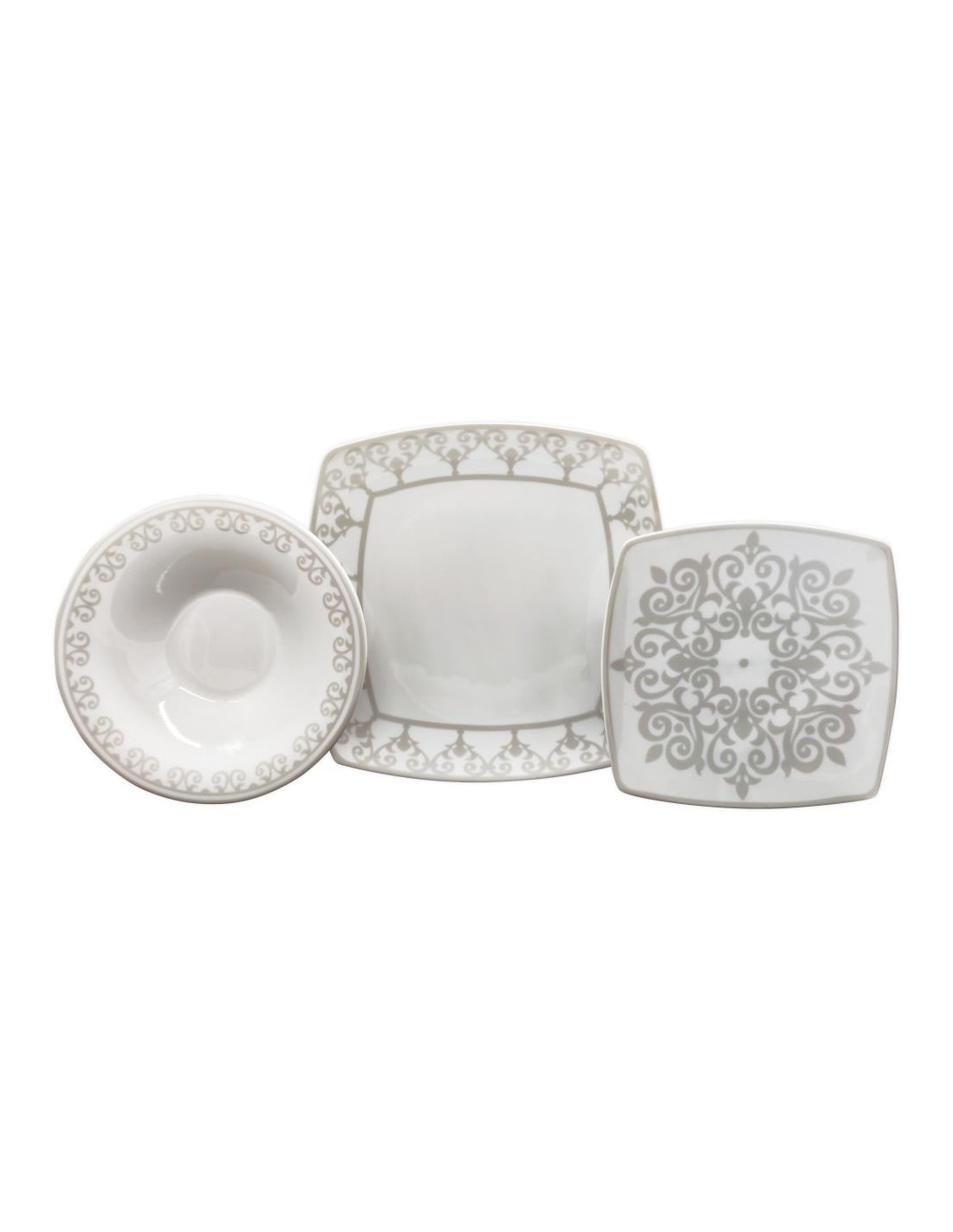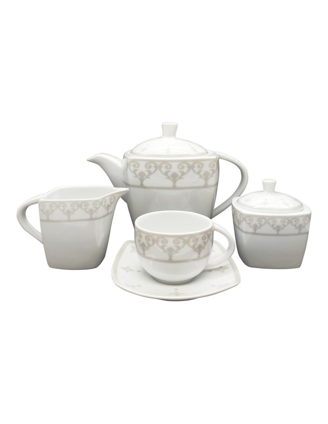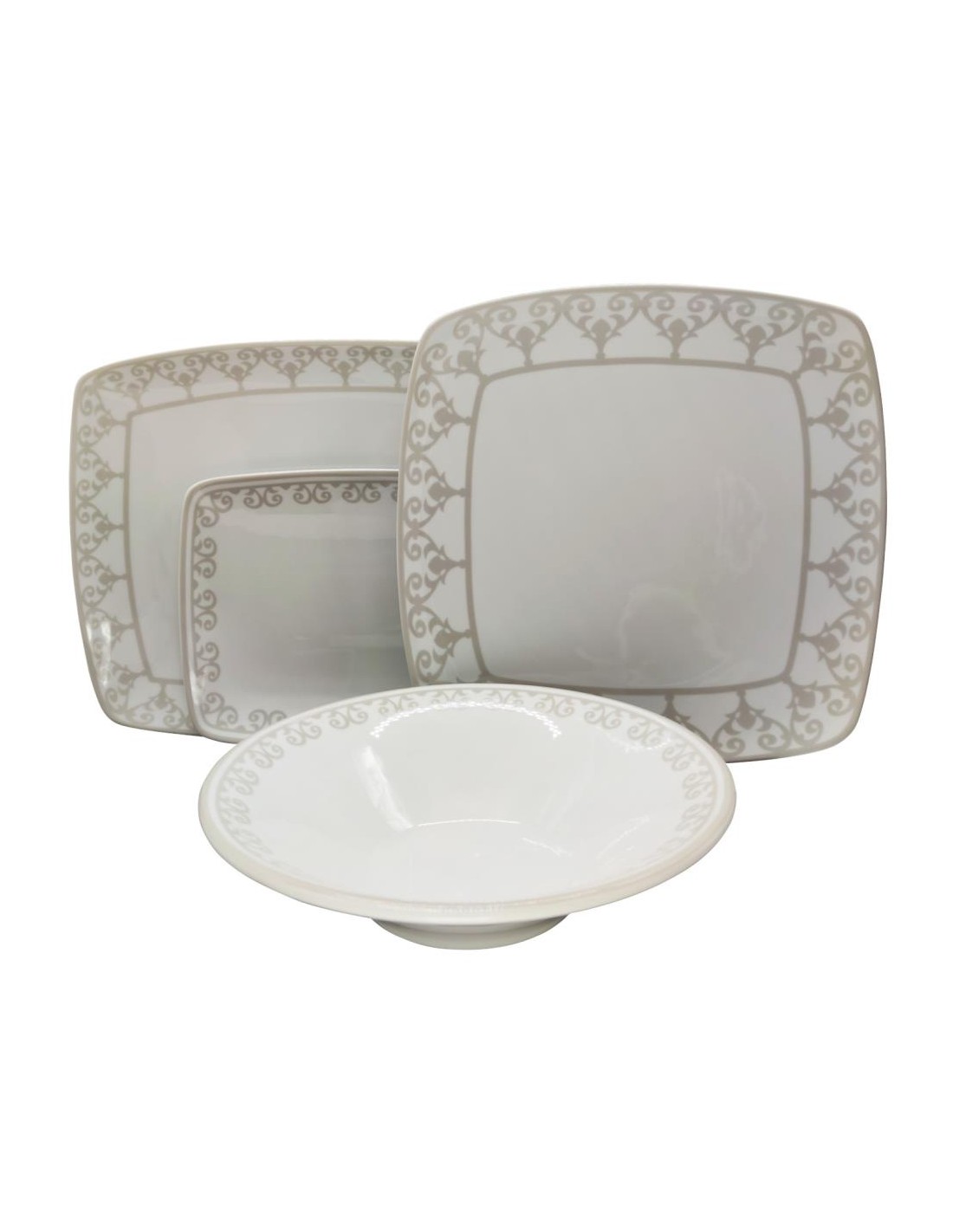 Servizio elegante quadrato in Fine Porcelain con un decoro classico