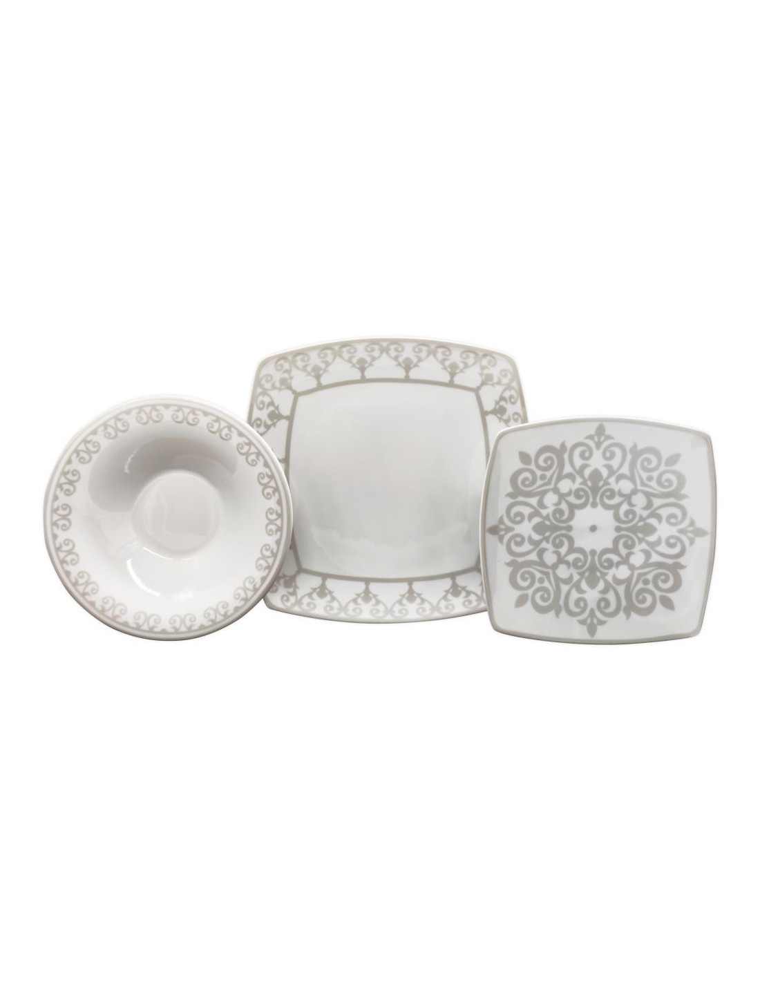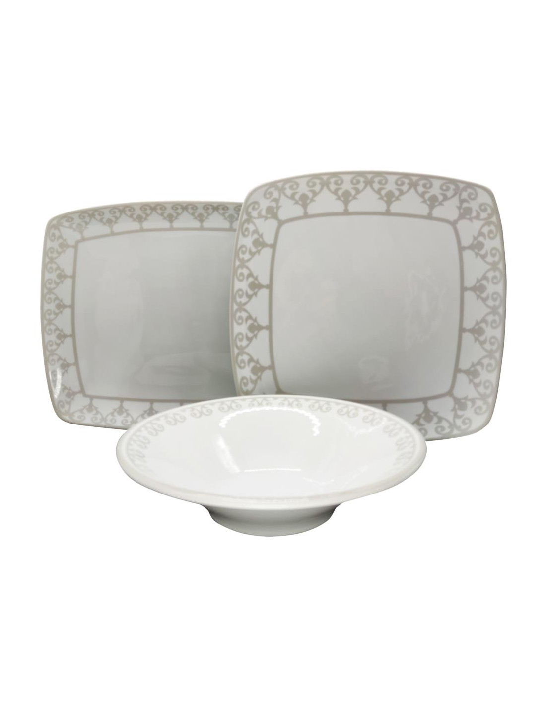 Servizio elegante quadrato in Fine Porcelain con un decoro classico ed elegante.