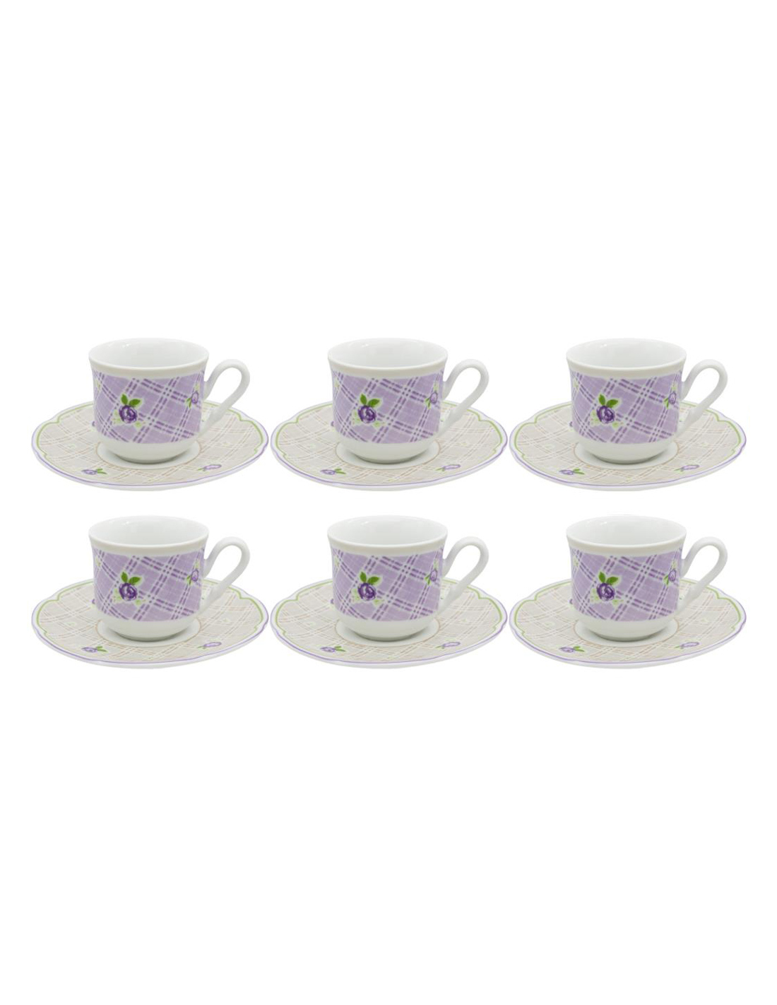 Set 6 tazze caffè con piattino coordinato in porcellana decorata, con rifiniture floreali.