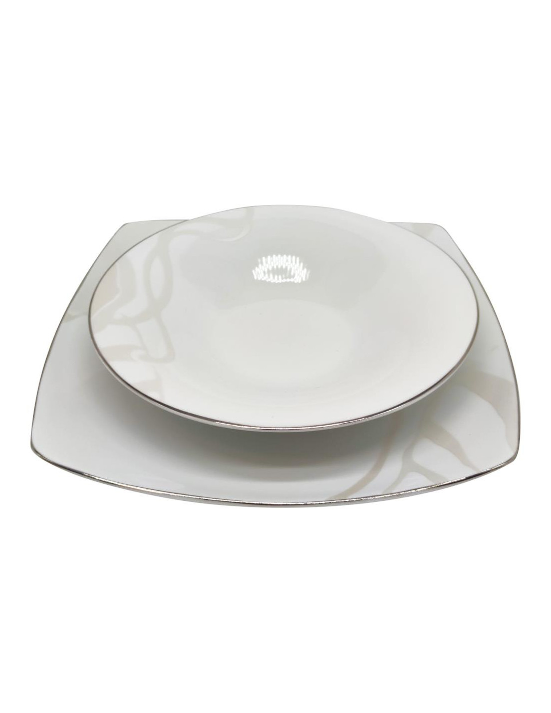 Servizio piatti elegante in porcellana decorata e bordo filo platino