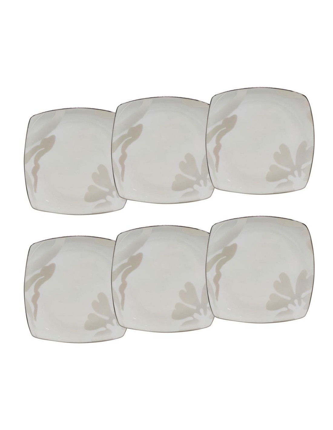 Set 6 piattini dessert in porcellana decorata con bordino in filo