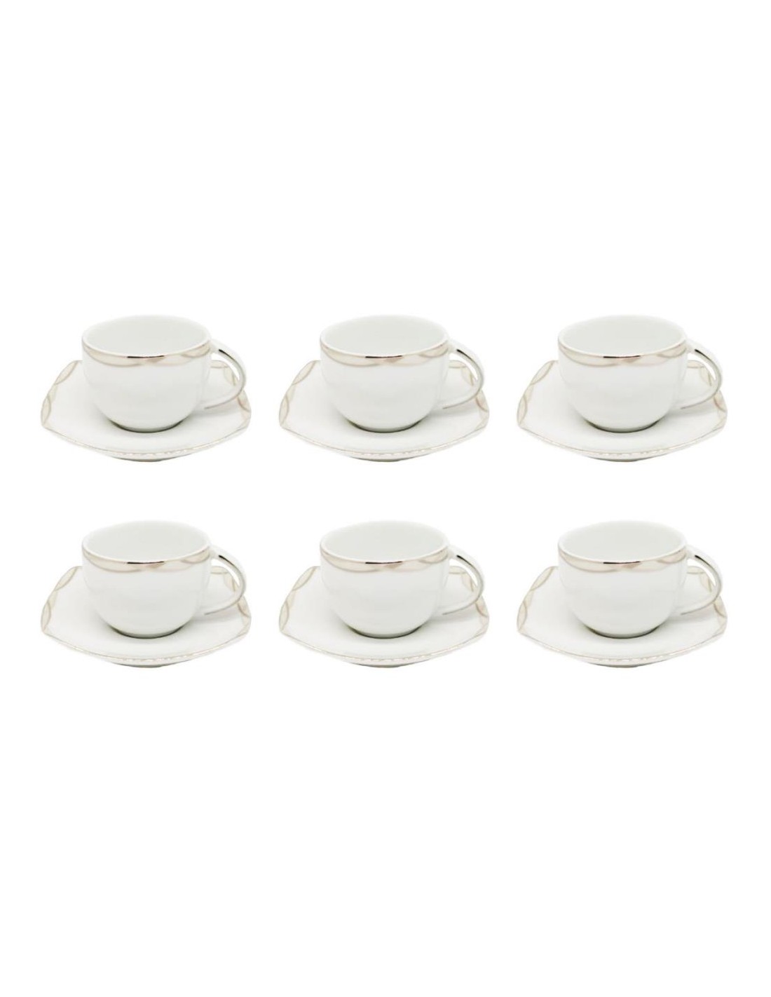 Set 6 tazze the con piattino coordinato in porcellana con bordi in filo