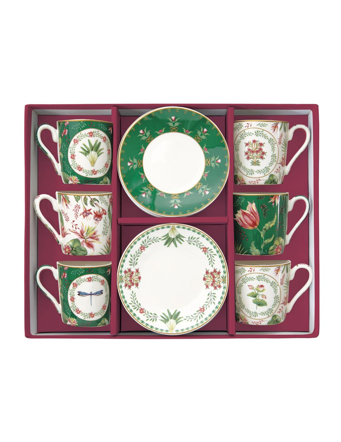 Le tazzine, con una capacità di 100 ml ciascuna, sono caratterizzate da una vivace decorazione ispirata ai giardini botanici, con motivi floreali e colori naturali.