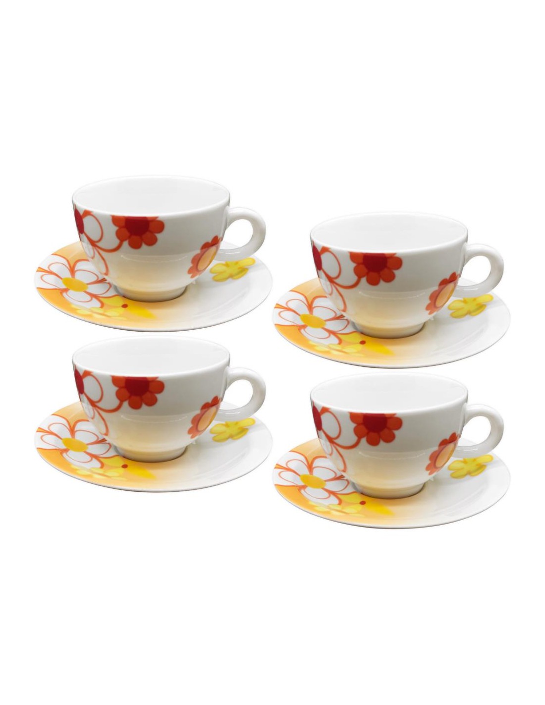 Set 4 tazze the con piattino coordinato, in porcellana decorata con motivi