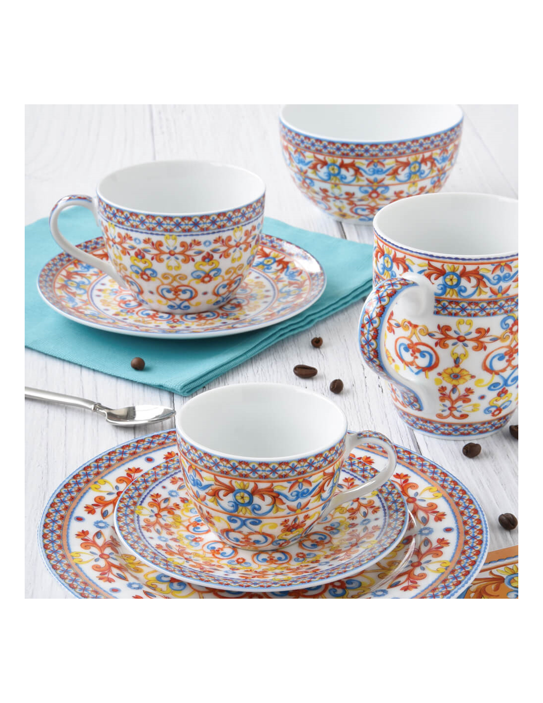 TAZZE CAFFÈ IN PORCELLANA A TEMA ESTIVO DECORATA CON SCATOLA ABBINATA