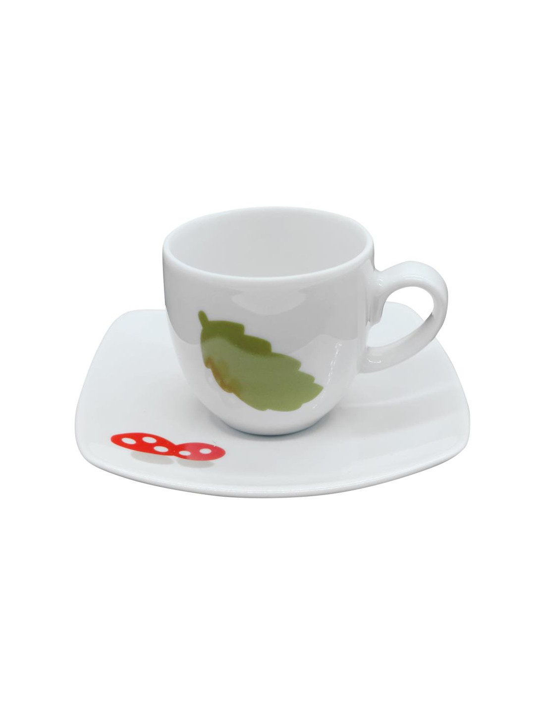Set 6 tazze caffè con piattino decorato da foglie e funghi