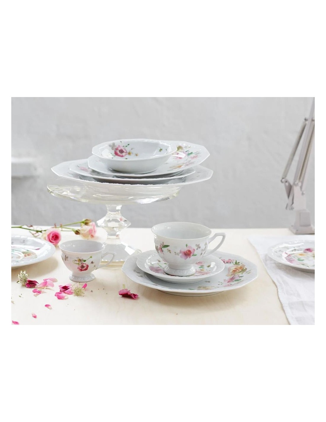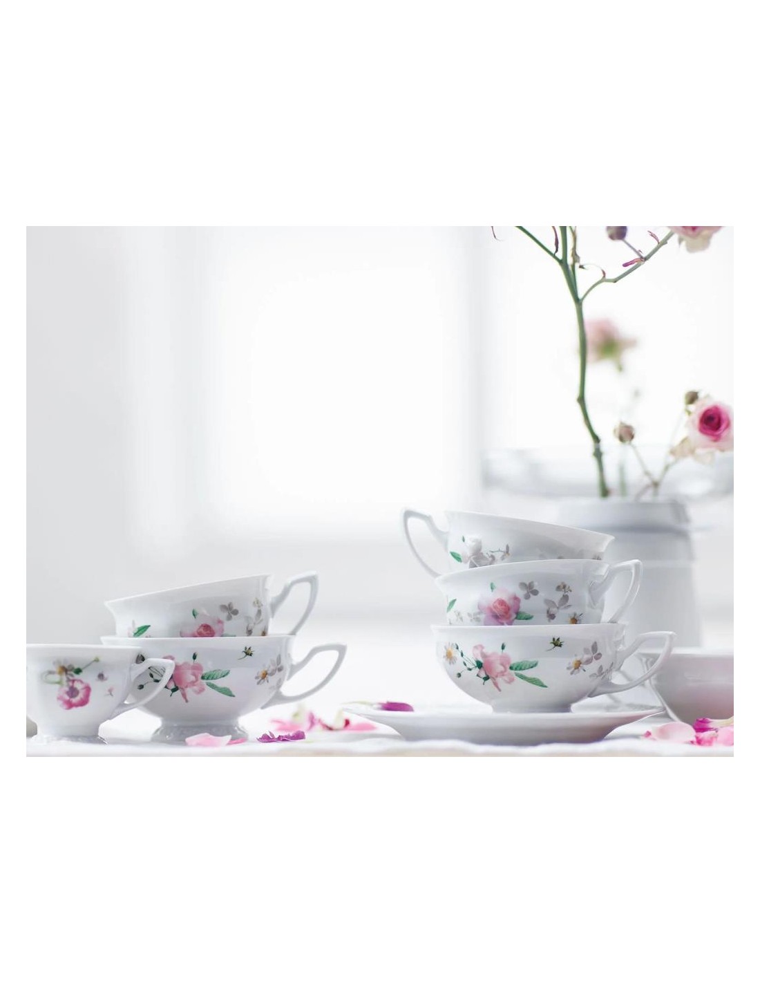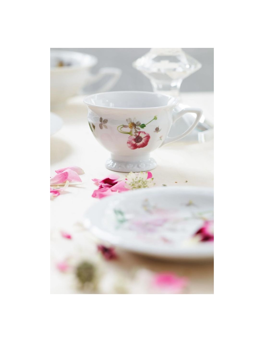 Delicate e vellutate, le immagini floreali avvolgono tazze, piatti e teiere di porcellana – isolate, in ghirlande o a gruppi.