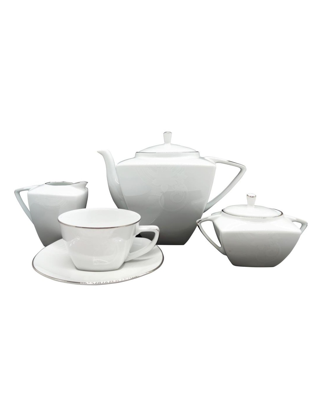 SET 6 TAZZE TE CON TEIERA, ZUCCHERIERA E LATTIERA IN PORCELLANA