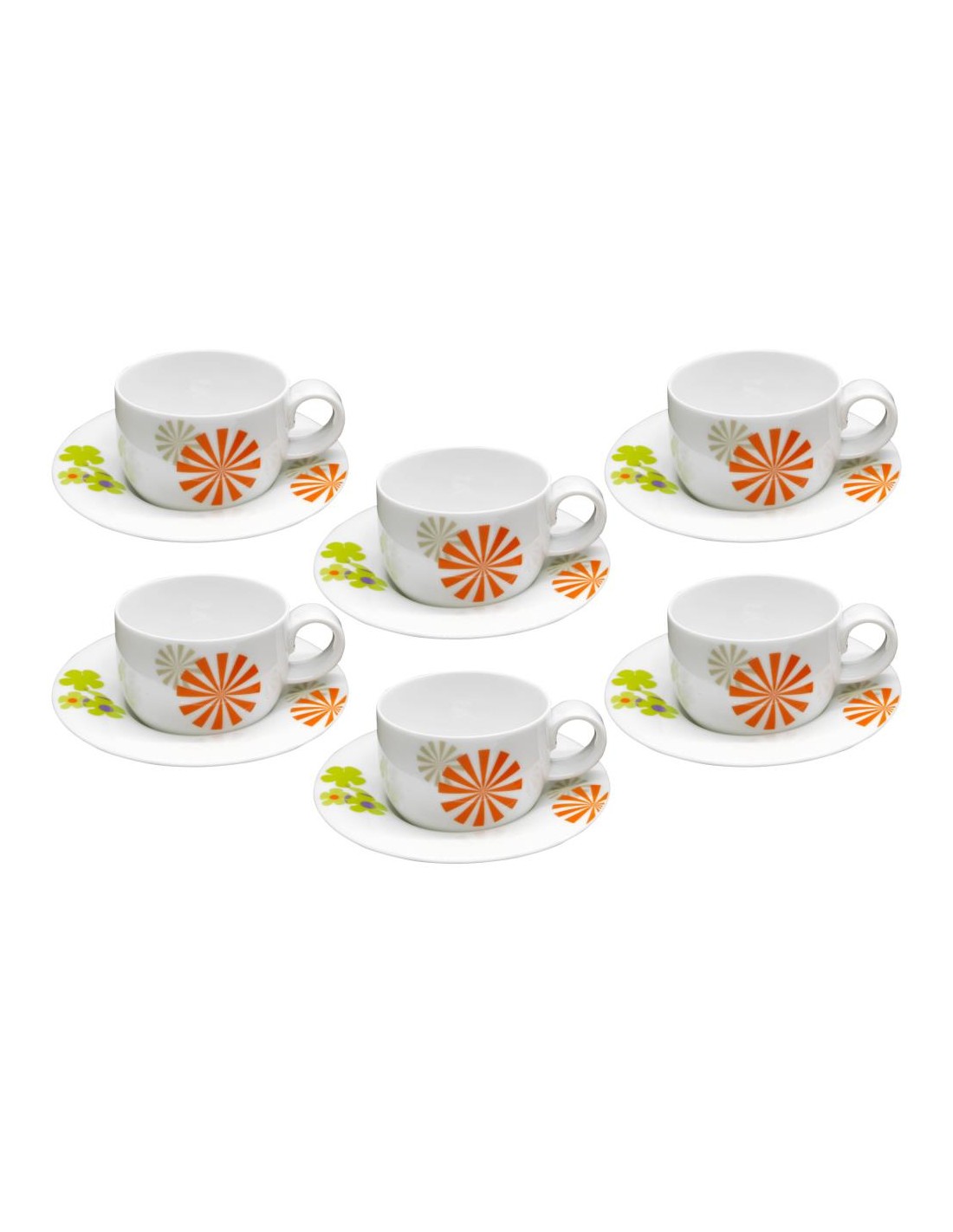 Set 6 tazze the/cappuccino con piattino coordinato in porcellana decorata.