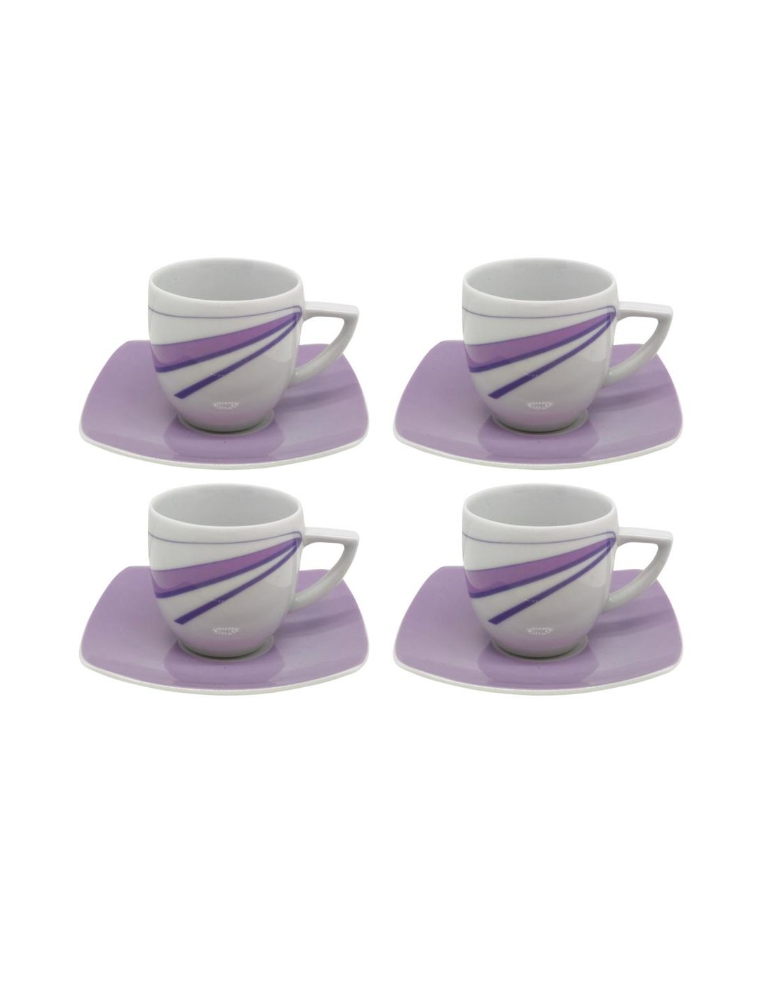 Set 4 tazzine caffeè con piattino quadrato coordinato in
