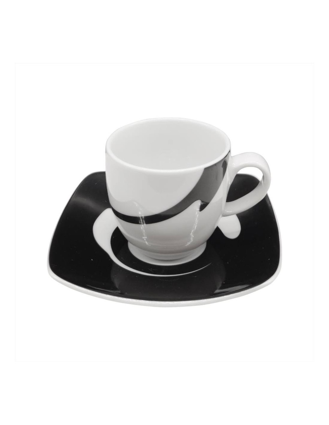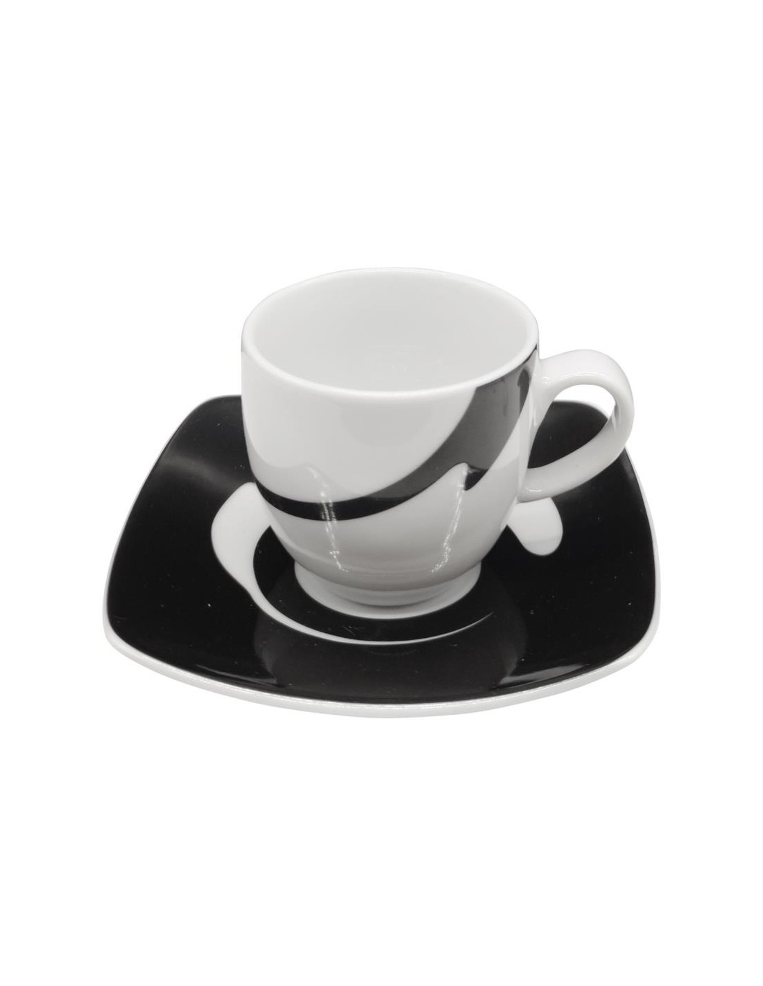 Set 6 tazze caffè con piattino quadrato coordinato in porcellana