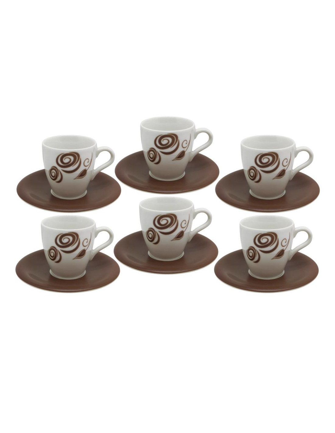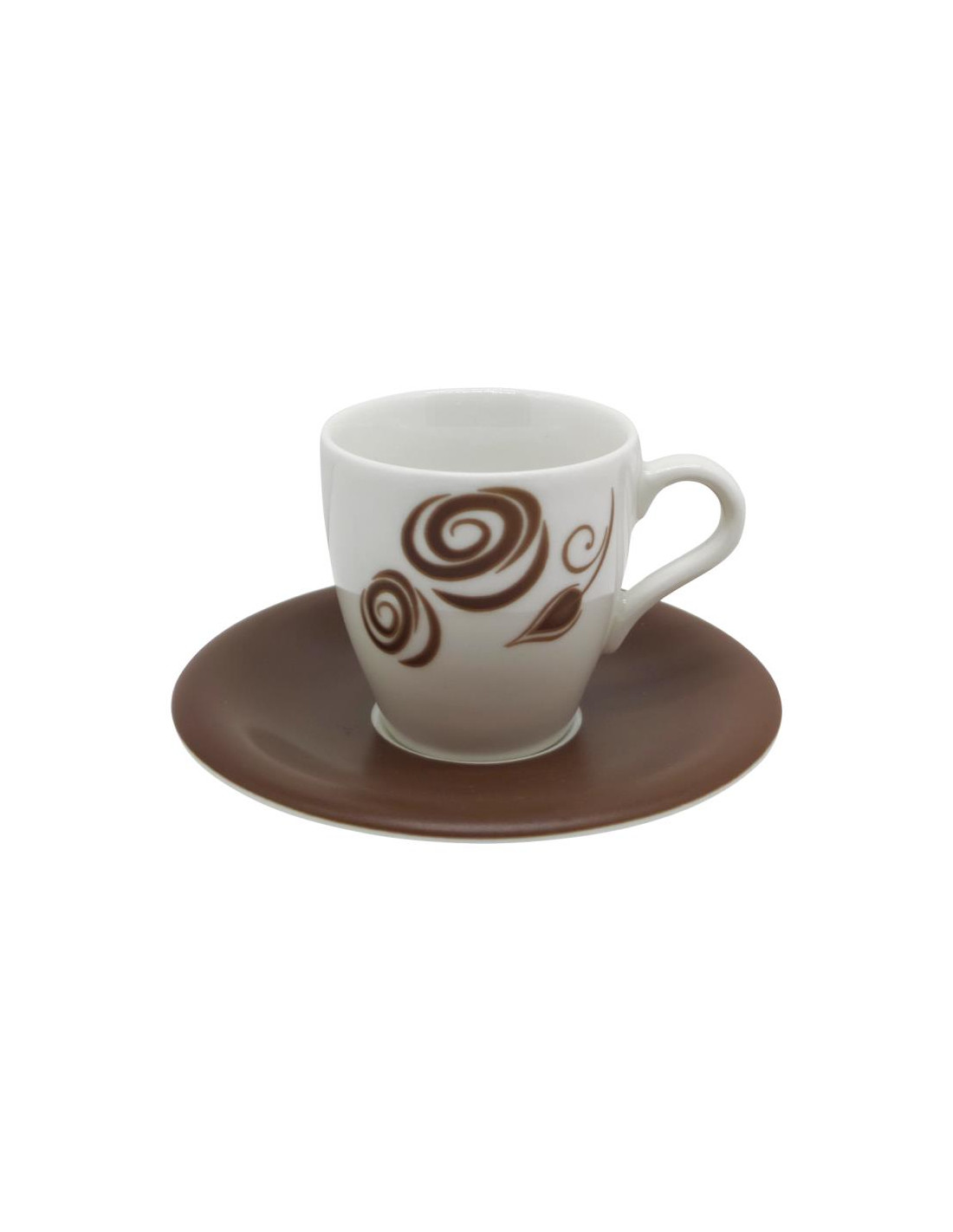 Set 6 tazze caffè con piattino coordinato in porcellana con decoro centrale