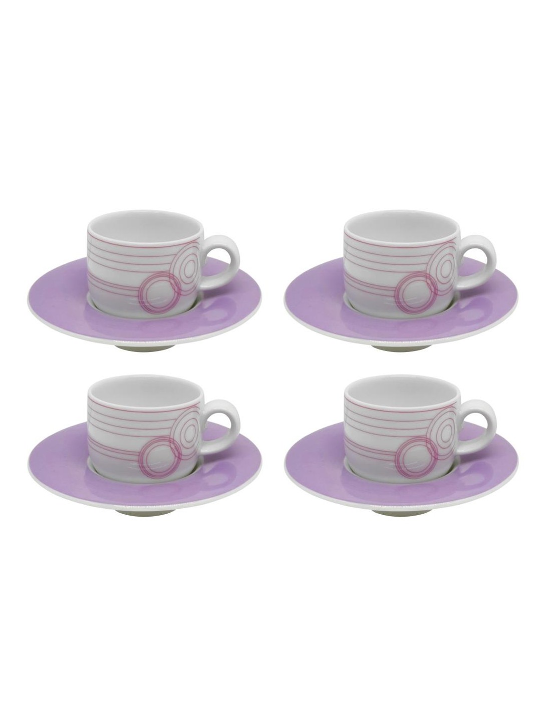 Set 4 tazze caffè con piattino coordinato in porcellana