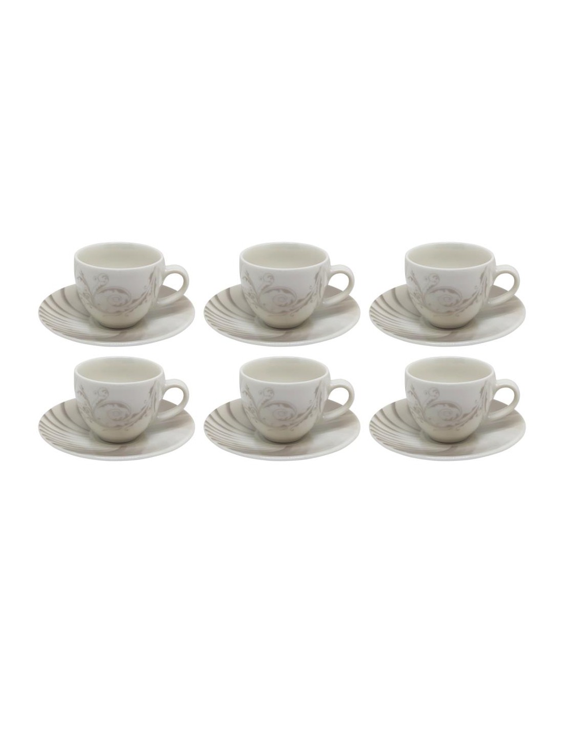 Set 6 tazze caffè con piattino coordinato in porcellana con decoro