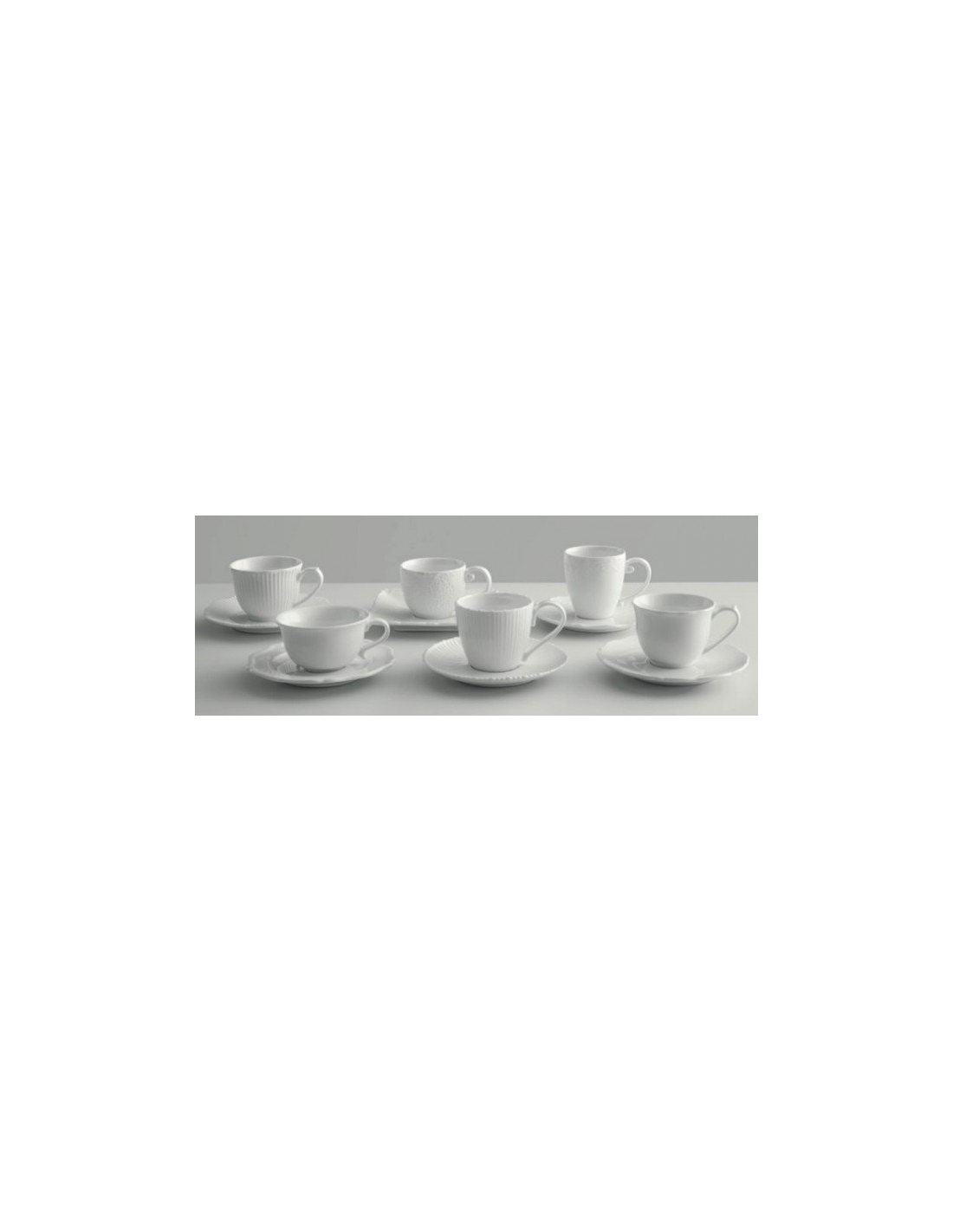 6 Tazze Caffè con piattino in porcellana con 6 forme diverse White Basics