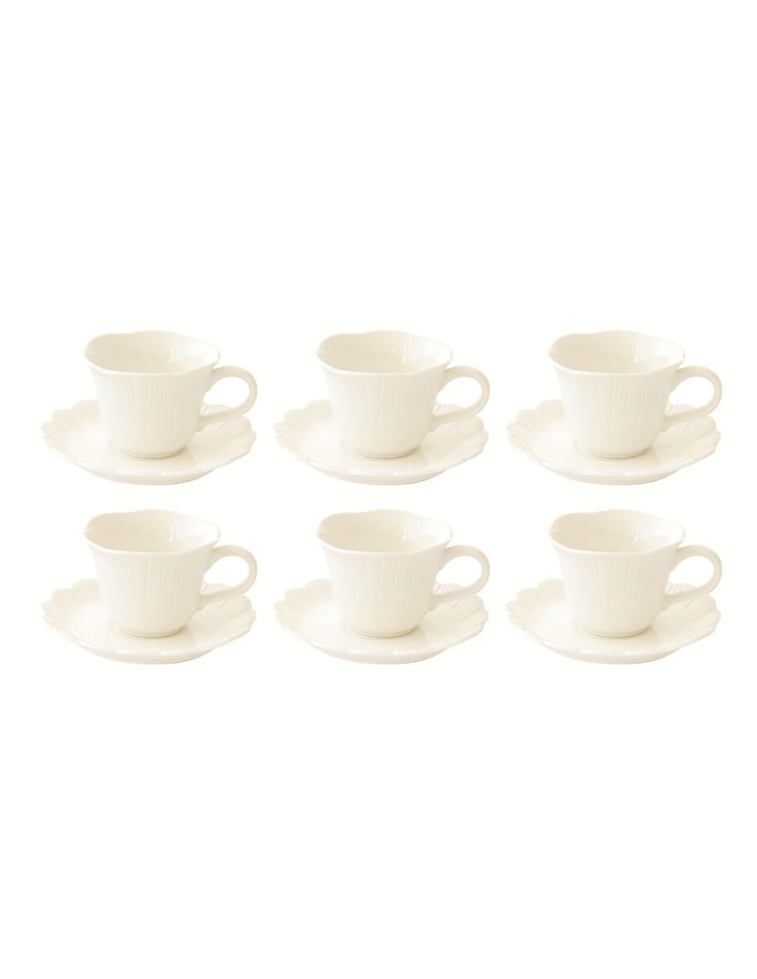 Set 6 tazzine caffè con piattino coordianto in porcellana a forma di fiore