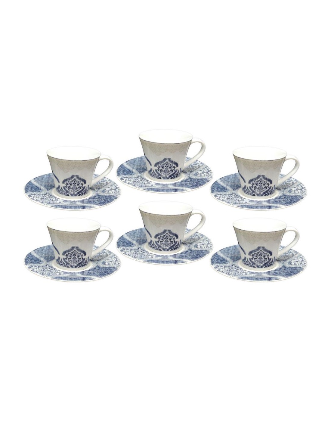 Set 6 tazze caffè con piattino coordinato in porcellana