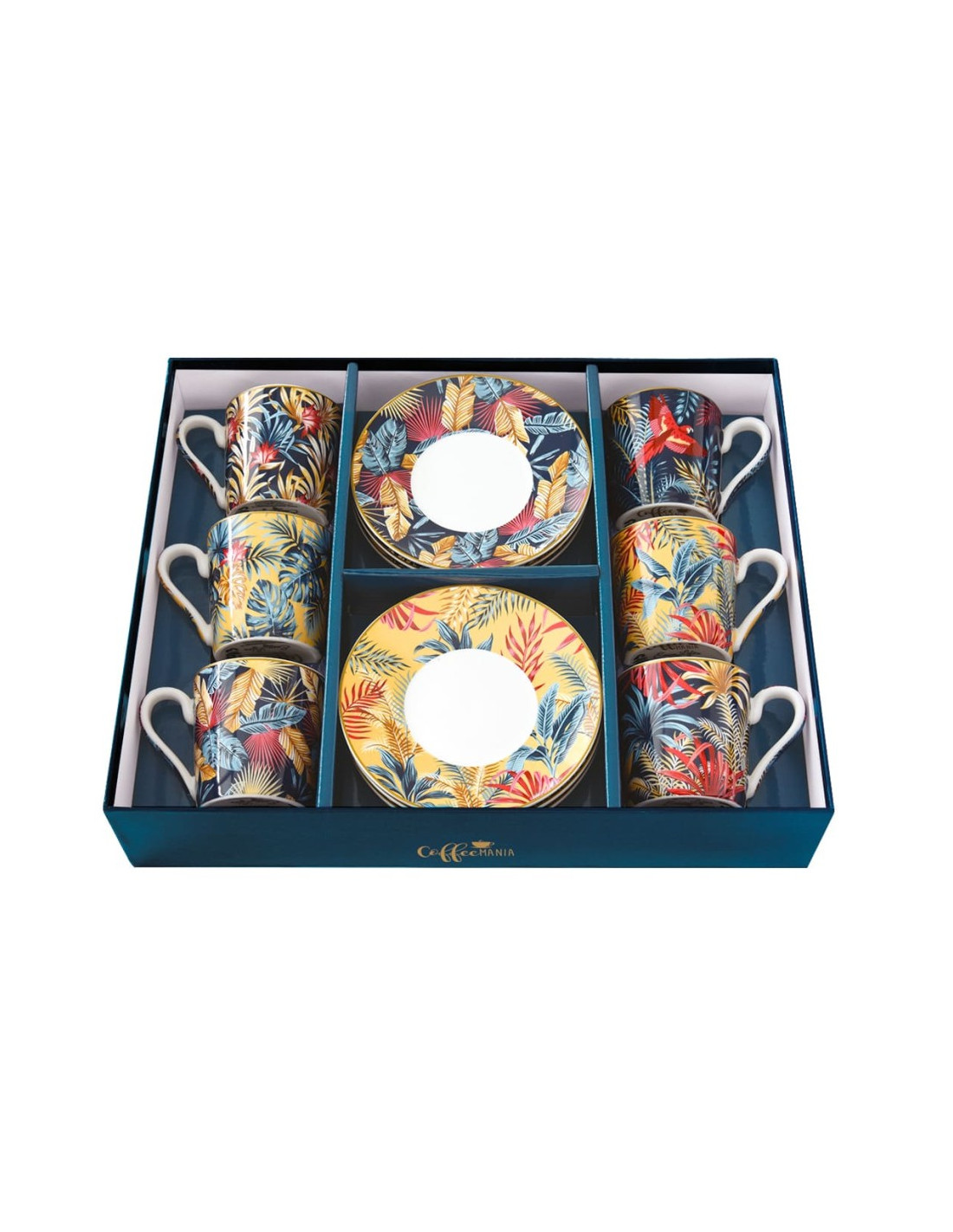 Set 6 tazzine caffè con piattino coordinato in porcellana decorata