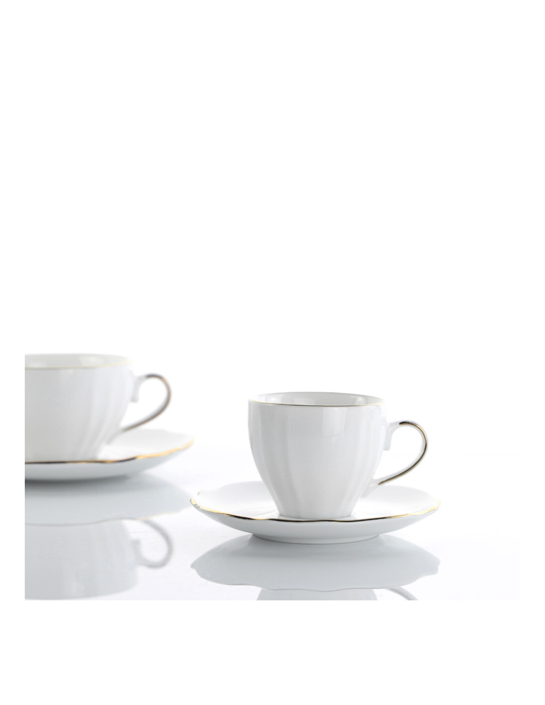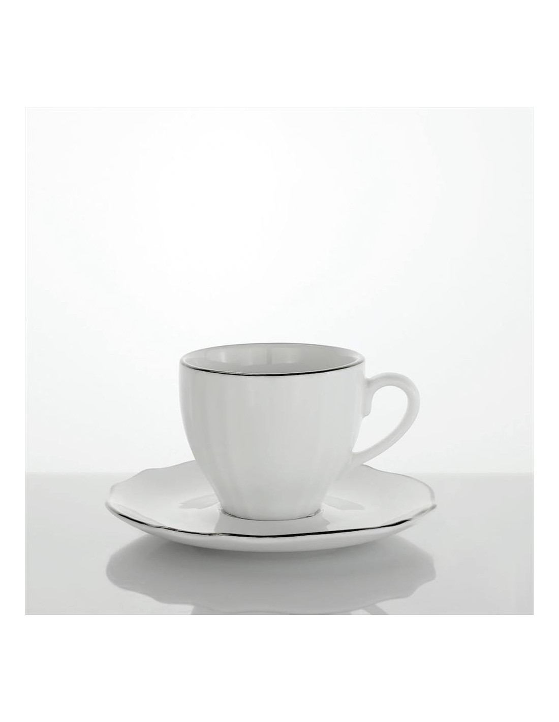Set 6 tazzine caffè in porcellana bianca con piattino, bordi filo