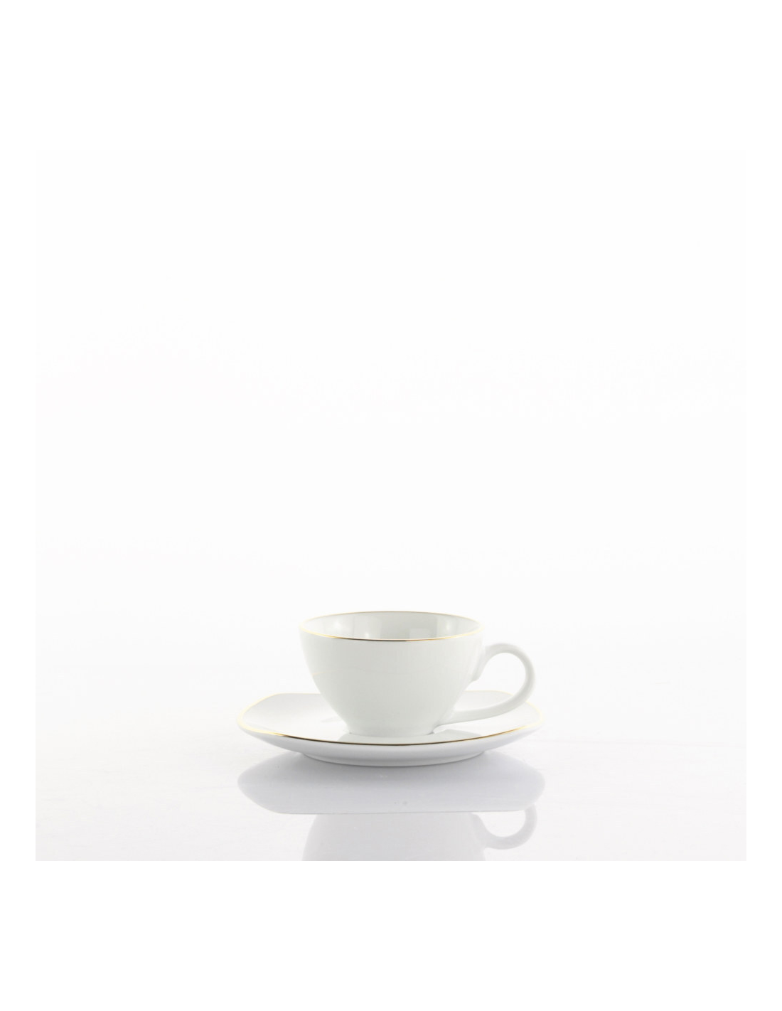 Set 2 tazzine caffè con piattino in porcellana bianca con bordi in filo prezioso.