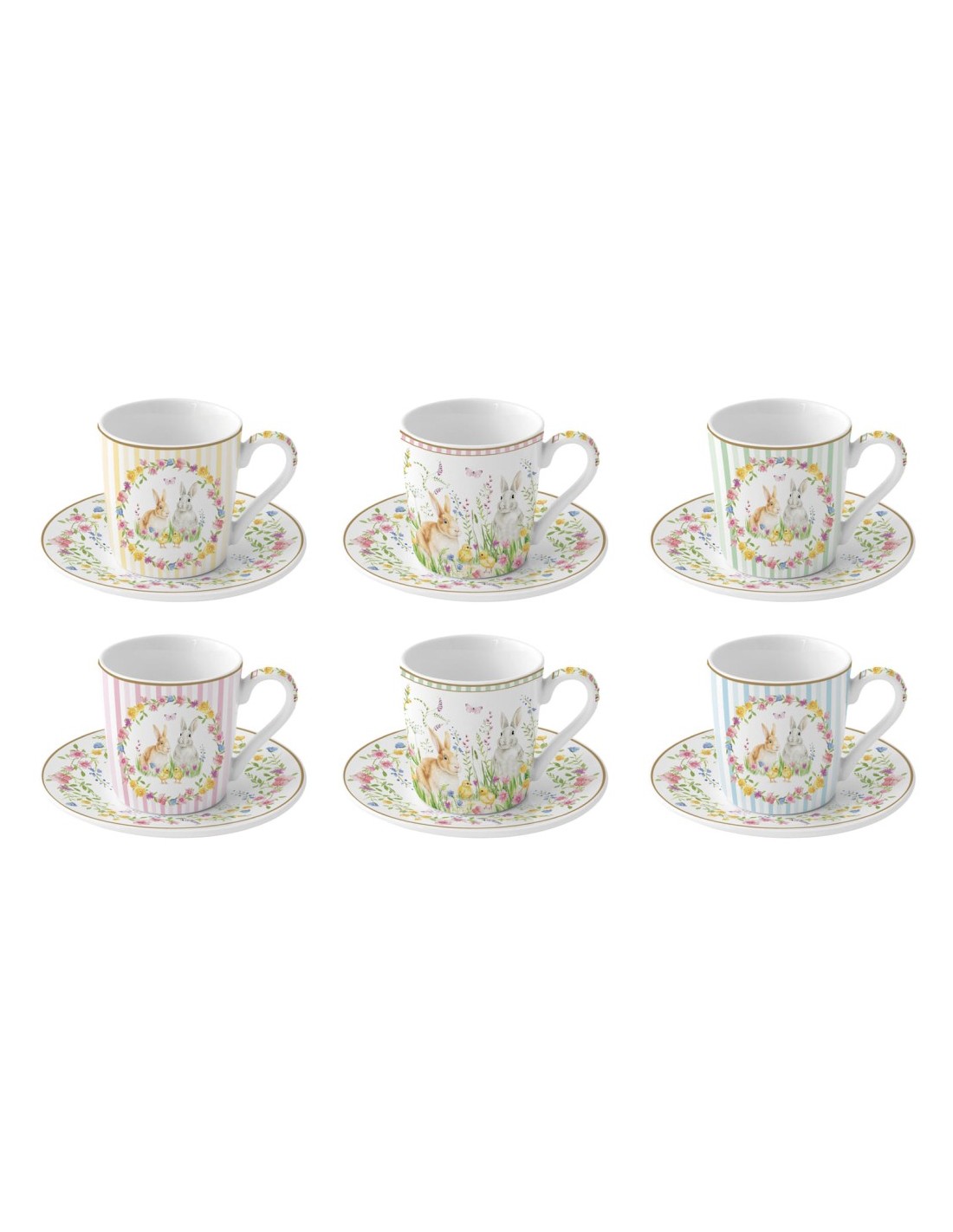 EASY LIFE SET 6 TAZZE CAFFÈ CON PIATTINO 100 ML - HAPPY EASTER