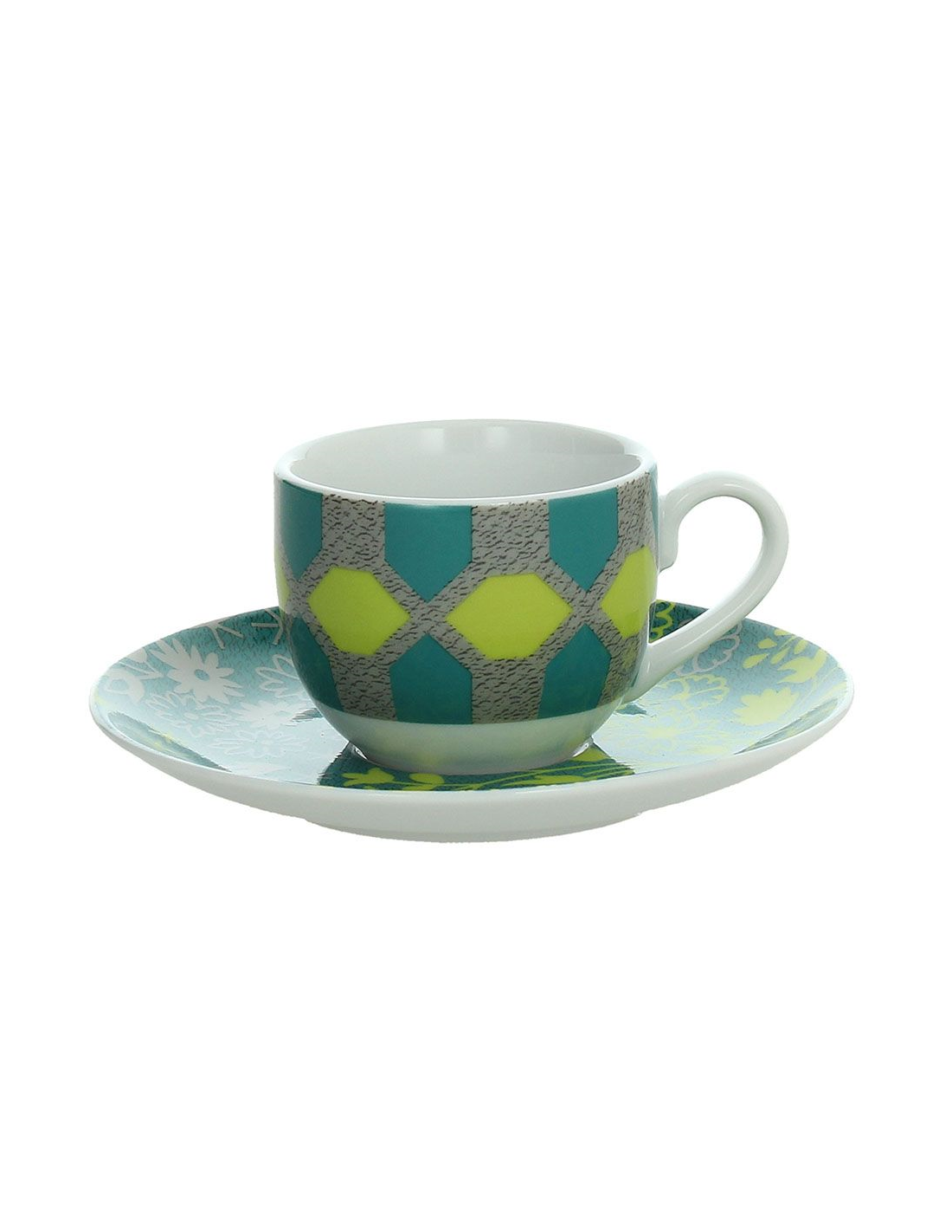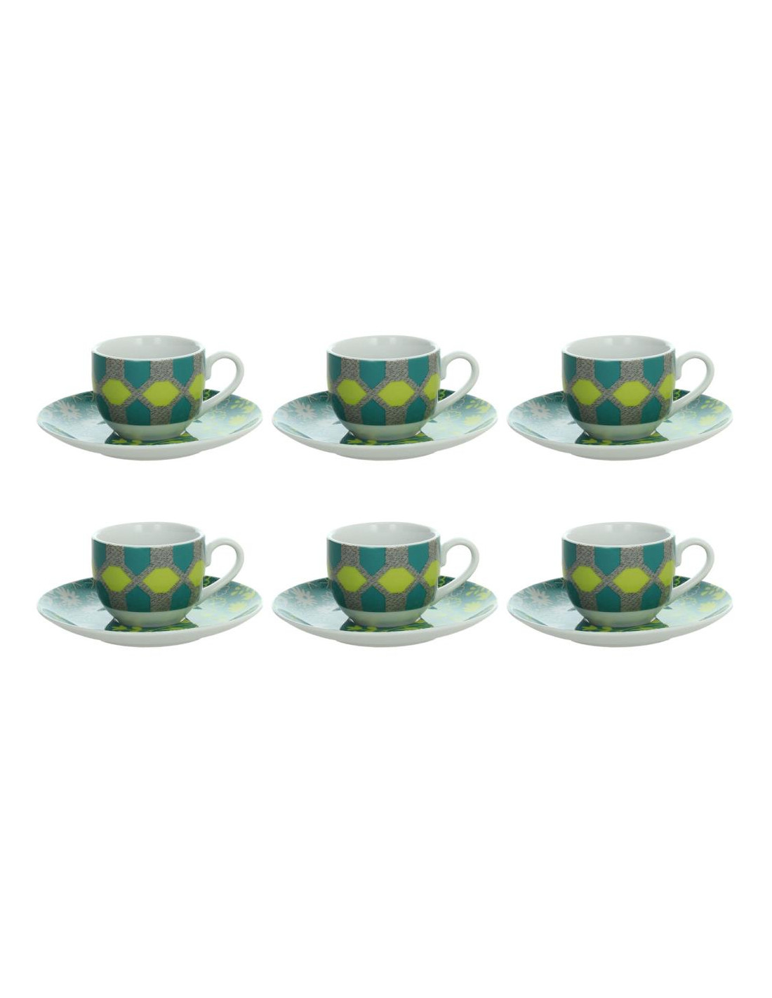 Set 6 tazze caffè con piattino coordinato in porcellana decorata.