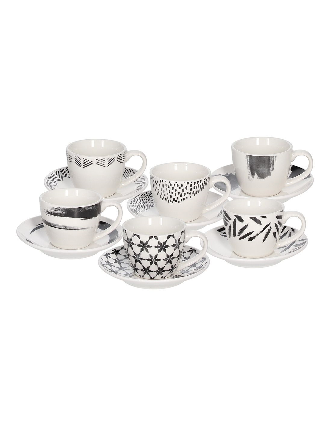 Set 6 tazze caffè in porcellana decorata, con piattino