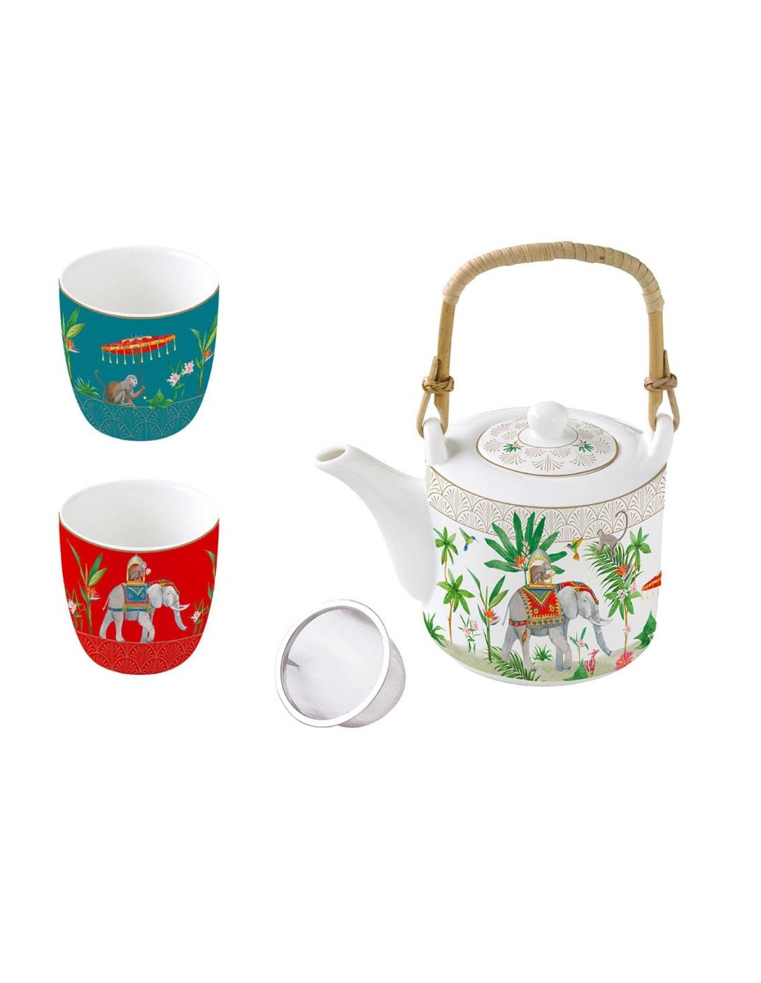 Una splendida teiera con infusiera in metallo e 2 bicchierini in porcellana: un set perfetto per servire un buon tè con un accessorio elegante, colorato e raffinato.