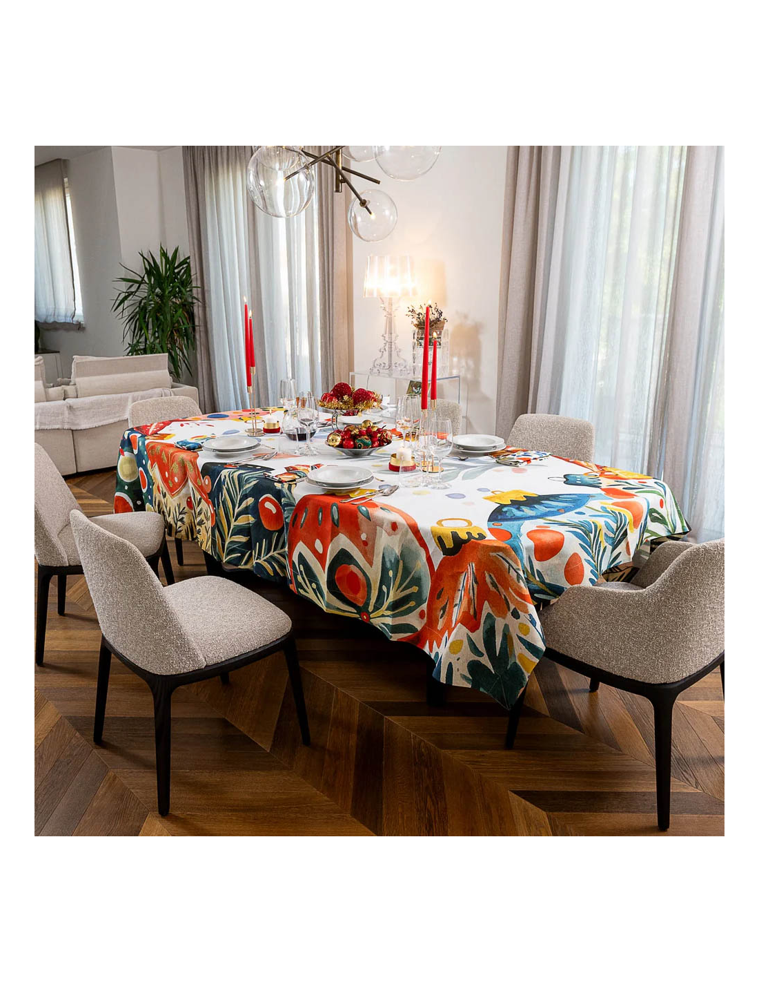 COPRITAVOLO NATALIZIO IN LINO 110 X 110 CM