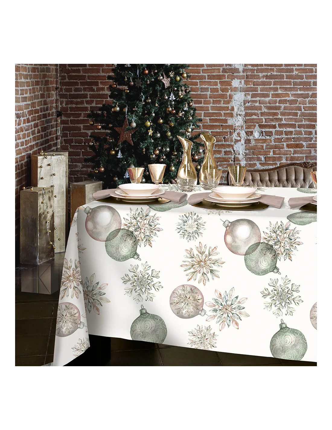 TESSITURA RANDI TOVAGLIA RETTANGOLARE NATALIZIA IN PURO COTONE - CRISTALLO