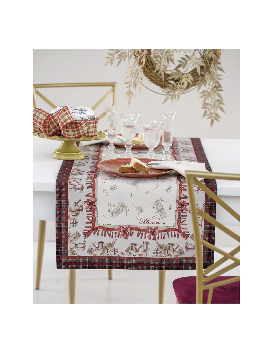 RUNNER NATALIZIO 50 X 150 CM IN PANAMA DI COTONE ANTIMACCHIA