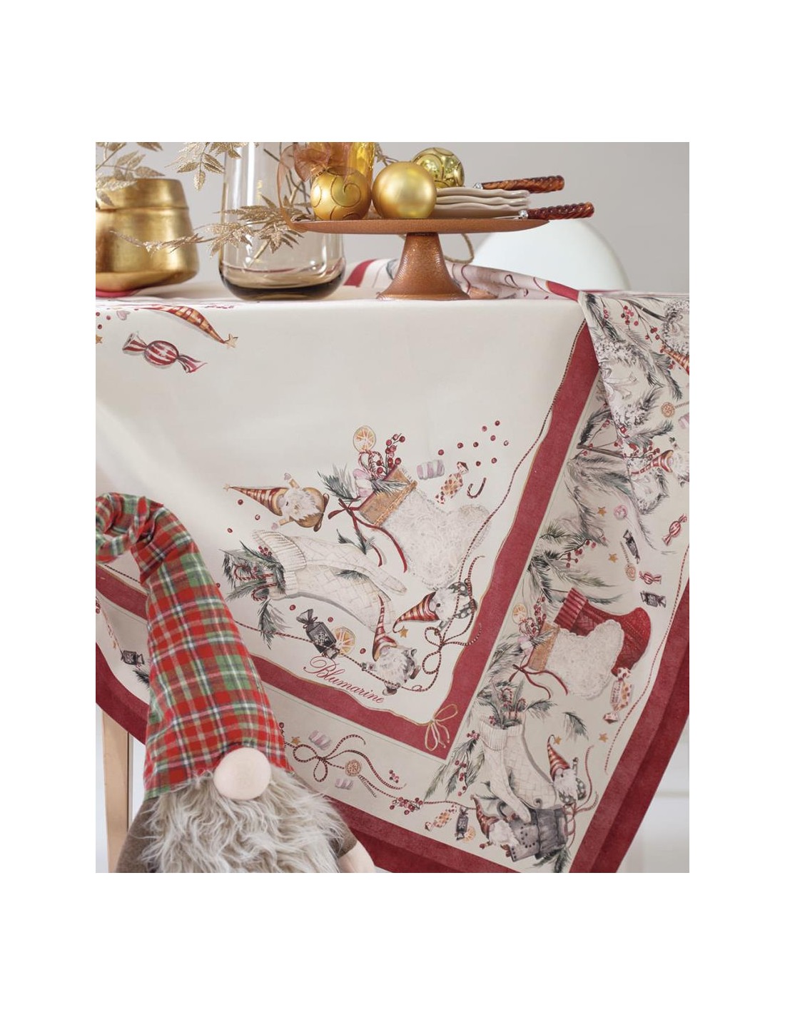 Copritavolo Blumarine linea Elfi in panama con staampa natalizia